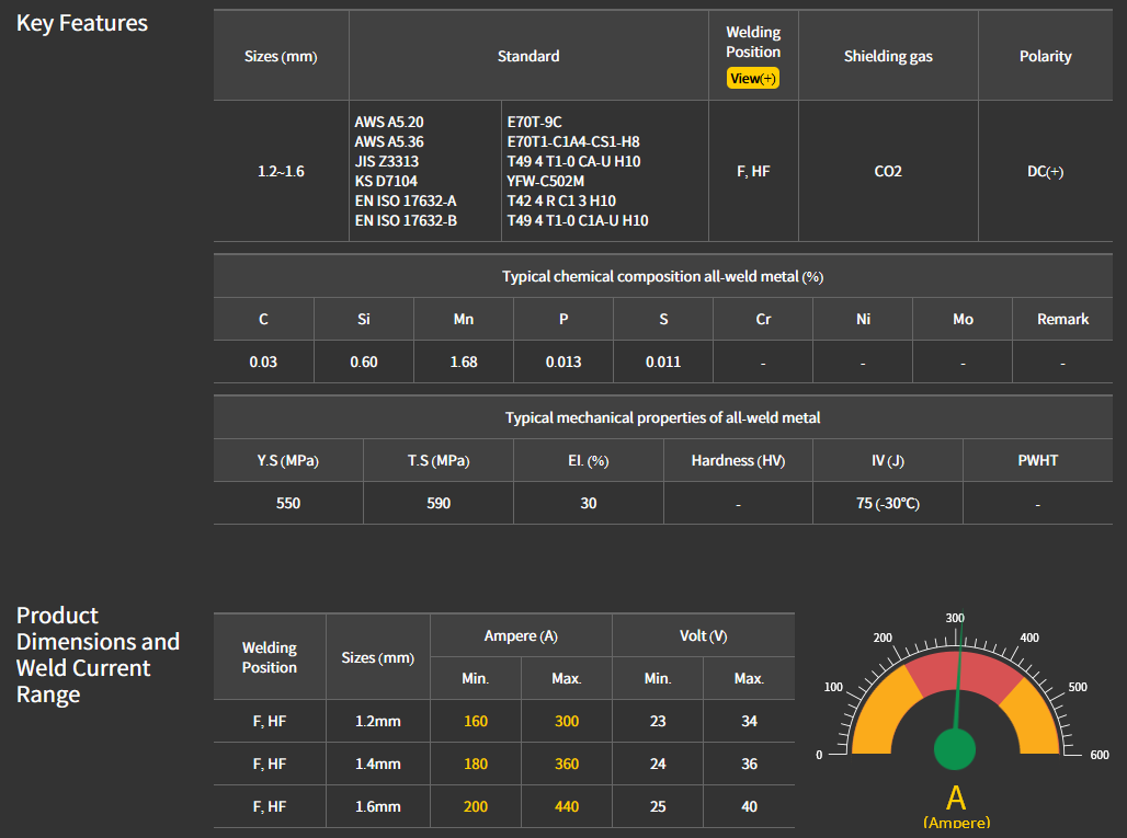 - AWS: A5.36 : E70T1-C1A4-CS1-H8