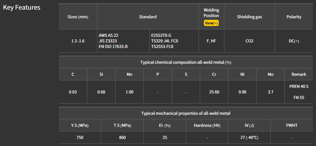 Welding of 25%Cr-9%Ni-3%MoCu duplex STS with chemical plant, shipbuilding, nuclear plant industries(UNS S32520, S32550)