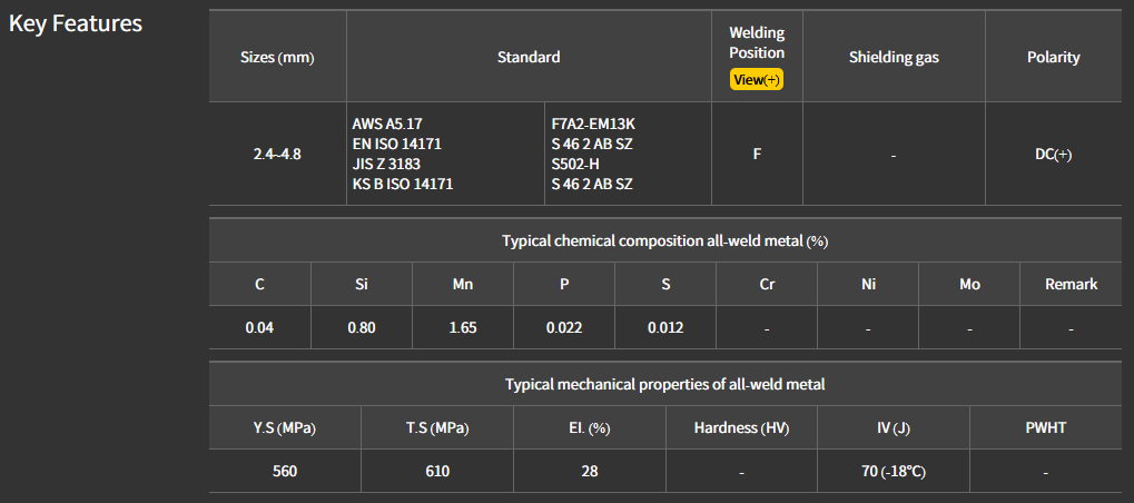 Active flux for limited pass welding of ship buildings, steel frames, structures and bridges. Bead appearance and slag removal are excellent under higher welding speed with low current
