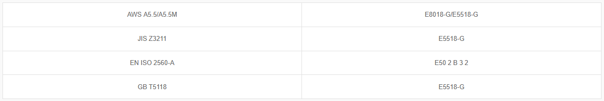 It is a low-hydrogen iron powder welding electrode for 550N/mm² grade high- tensile steel