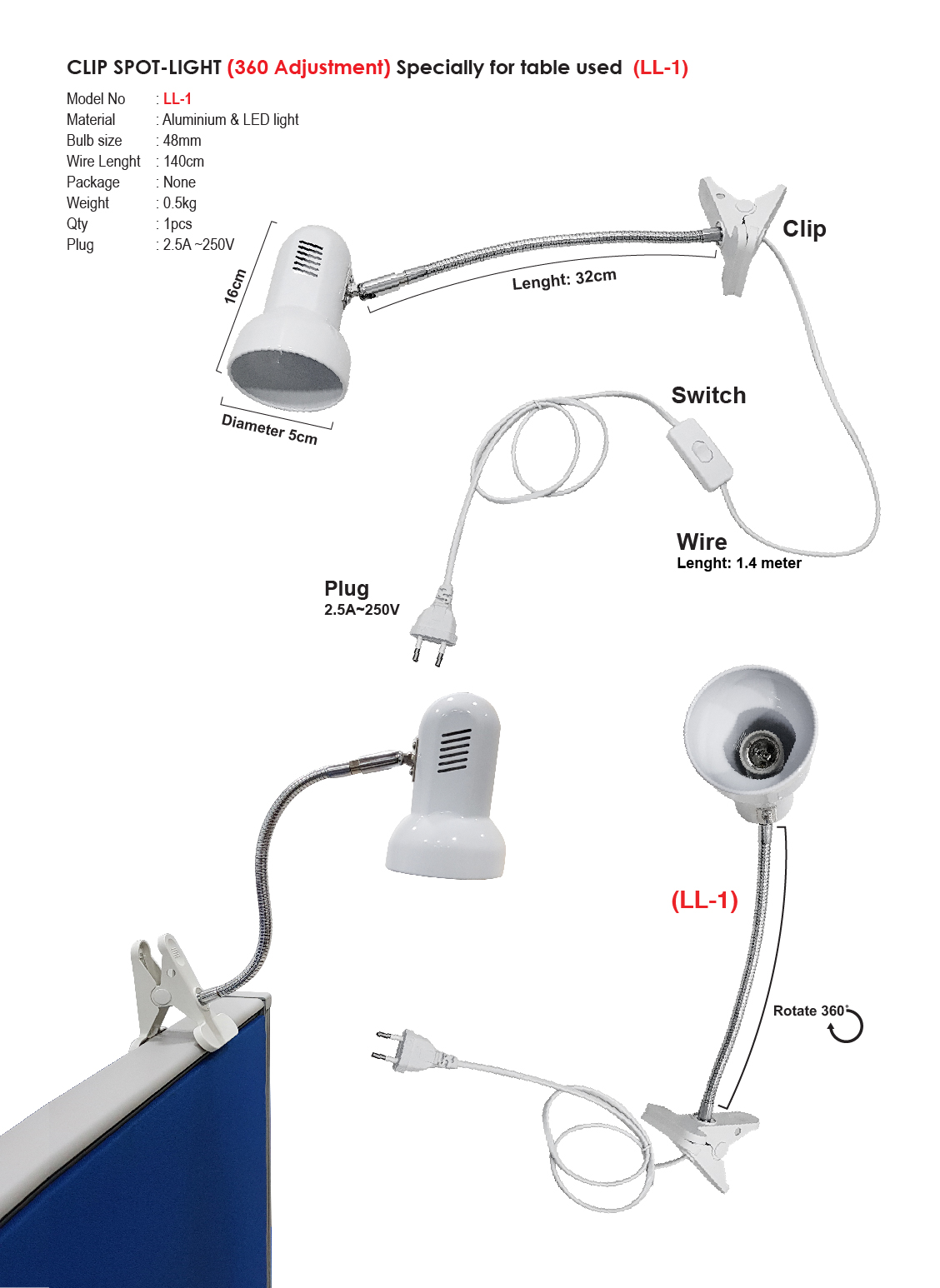 (LL-1) Clip Lamp 360 Adjustable 32cm