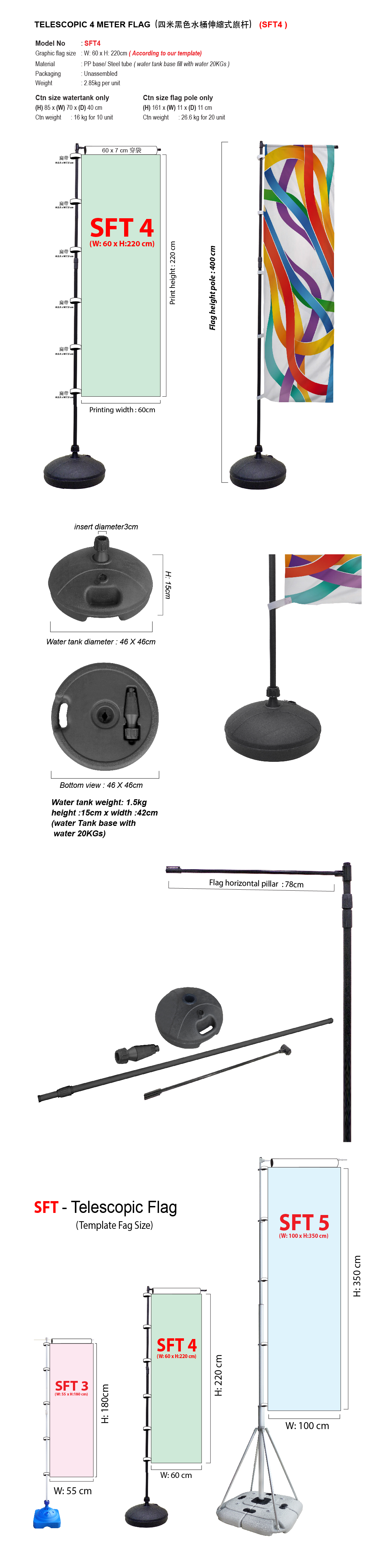 Telescopic 4 Meter Black water tank Flag (SFT4-black water tank)