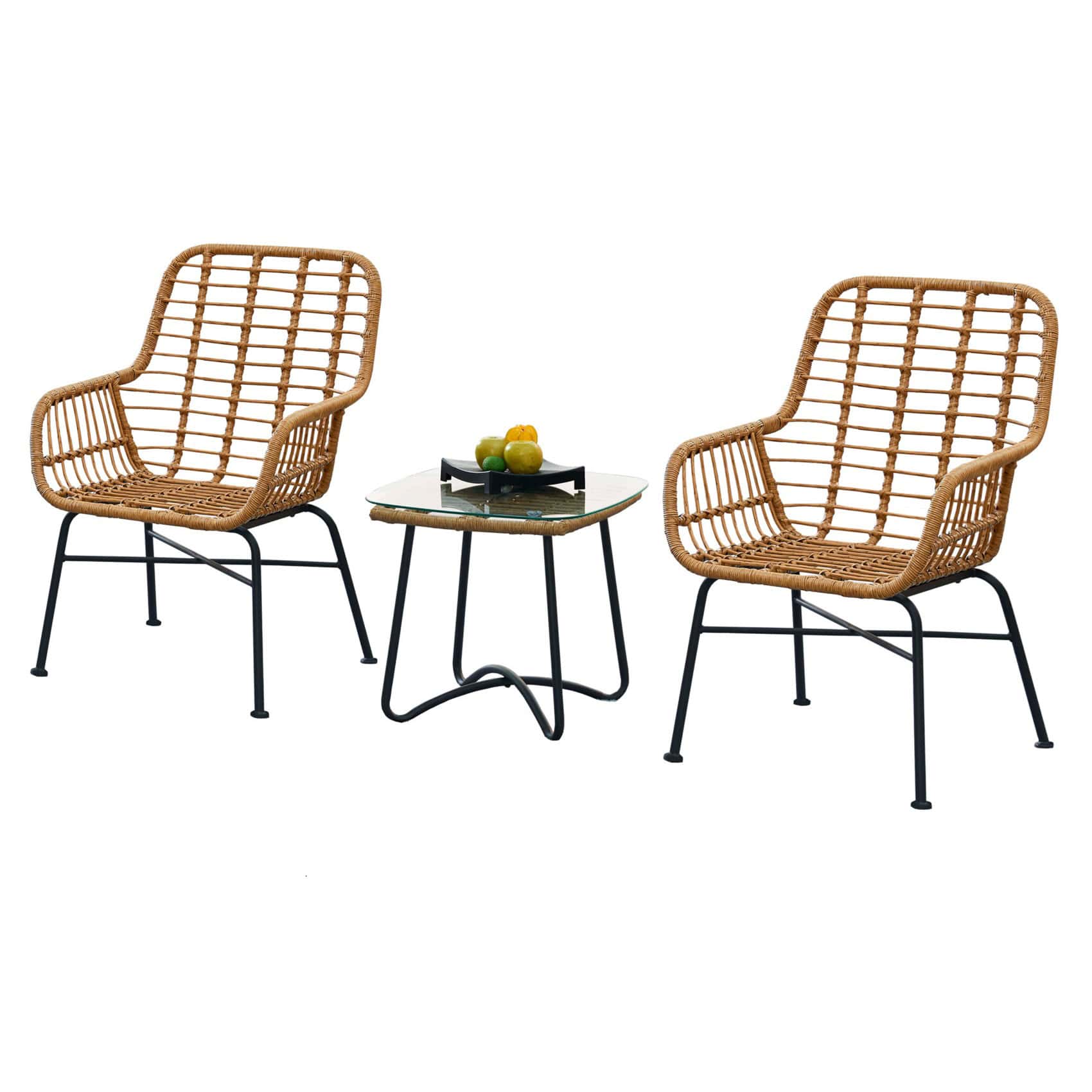 - Table Top : Glass Top and PP Rattan