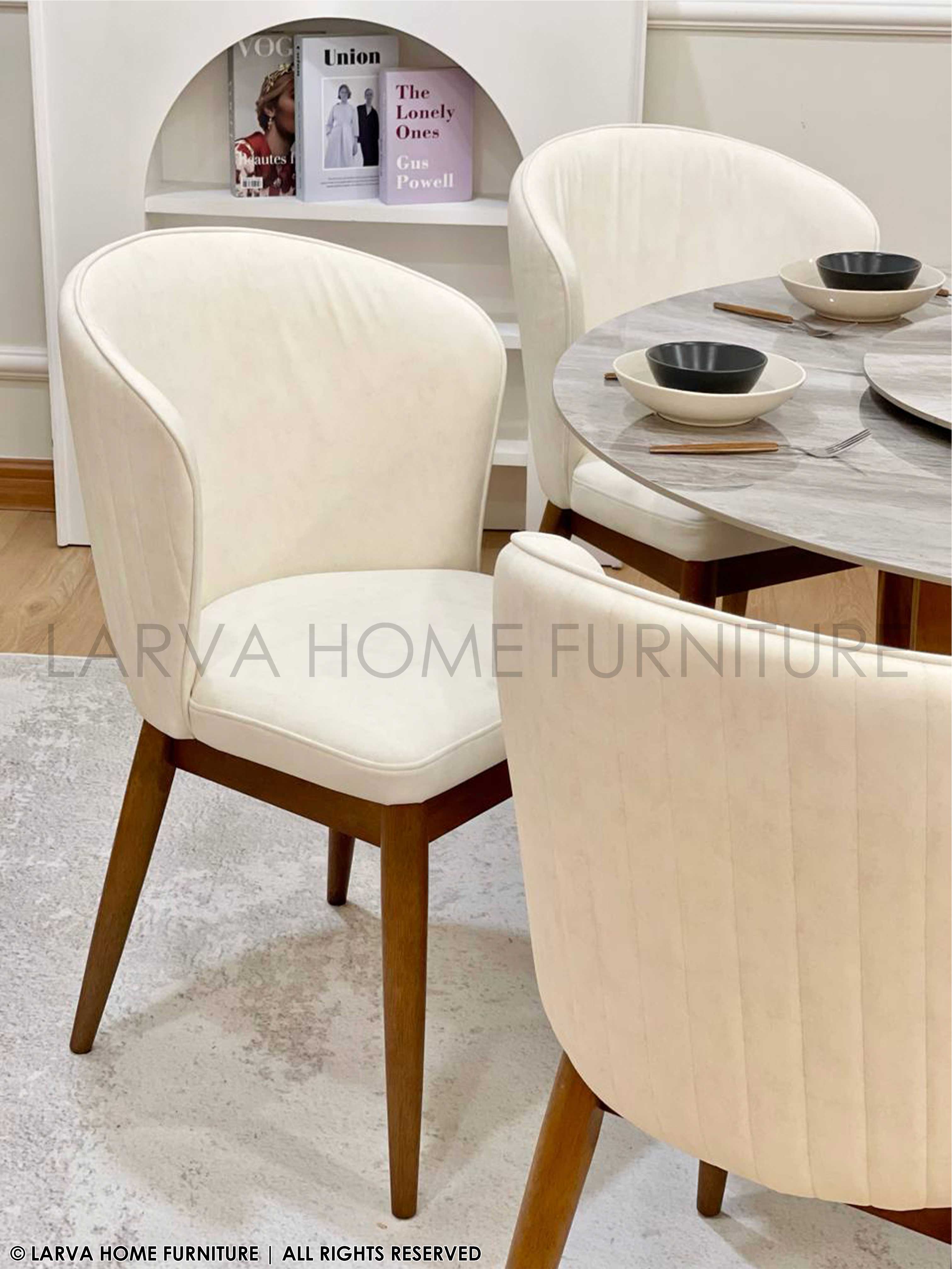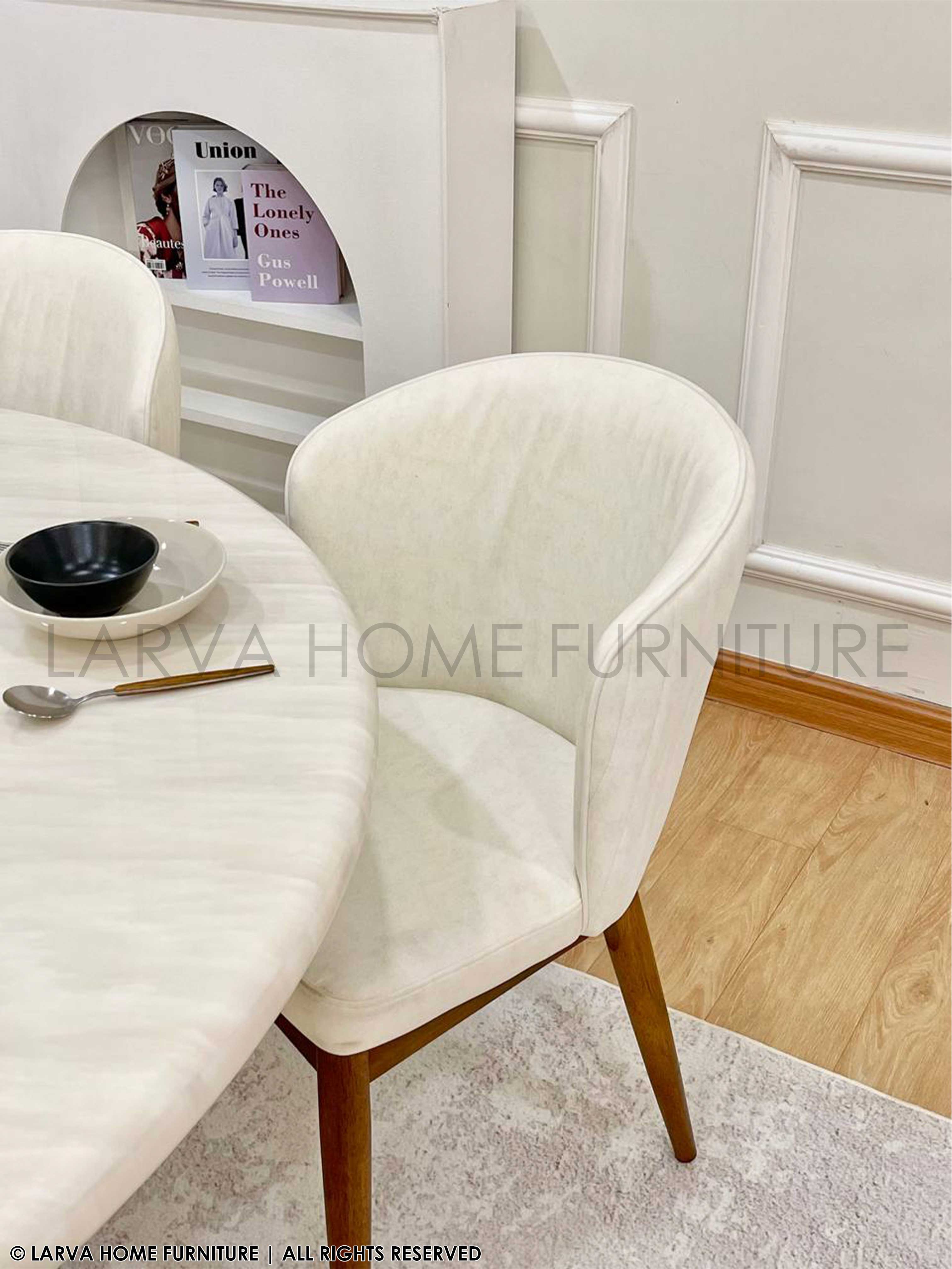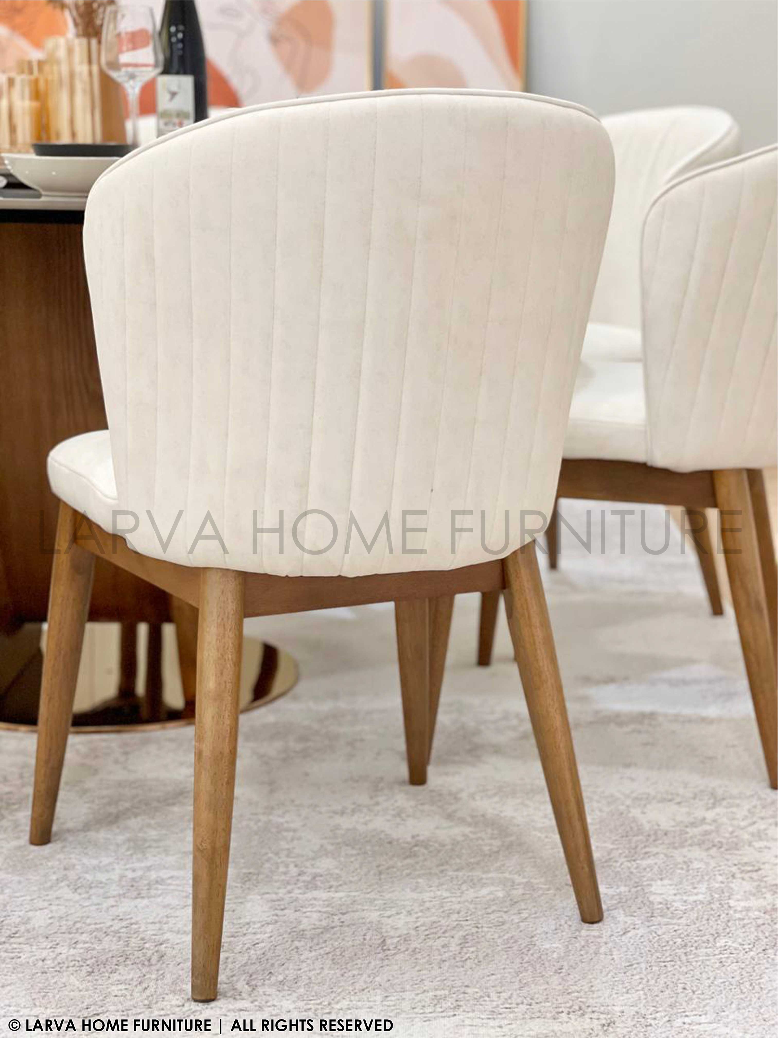 Bright and inviting, this white Mill Dining Chair brings a fresh touch to any interior. Its curved backrest and padded seat ensure maximum comfort during long meals. The wooden legs provide natural warmth and stability, blending perfectly with modern décor. A versatile piece that complements any dining or lounge space effortlessly.