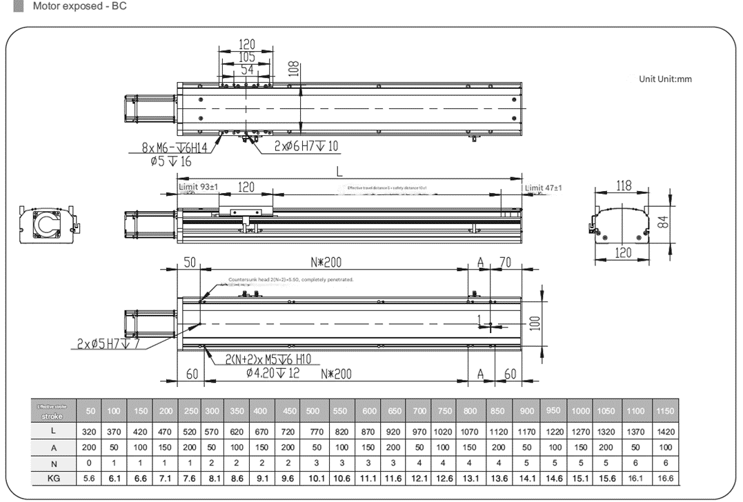 Standard Stroke Pitch (mm) 100-10500mm/50 interval 50mm pitch