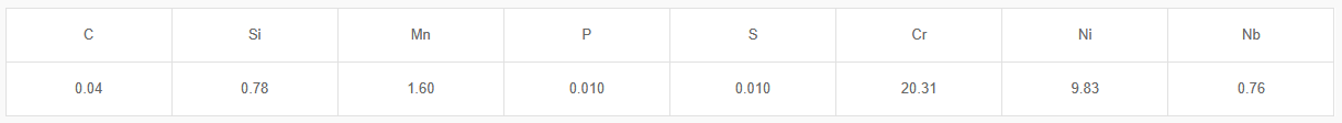 - Weld metal is austenitic structure with 19%Cr-9%Ni-Nb