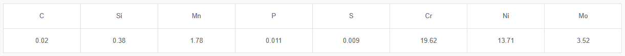 KTS-317L is a low-carbon austenitic stainless steel containing 19.5% Cr, 14% Ni, and 3.5% Mo