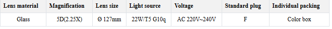 · Even, shadow-free light under the magnifying lens with 22-watt T5 circular fluorescent tube