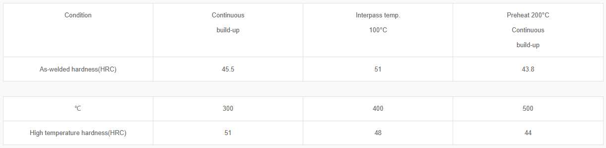 KH-SLC is a co-based hardfacing electrode (equivalent to Stellite 1). Its feature is similar with KH-SLA and KH-SLB. However, the impact and corrosion resistance might be lower