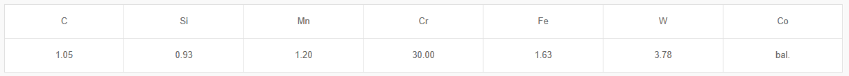 - It is suitable for high temperature abrasion with corrosive environment, such as high temperature valve seats, hot work tools, cutters, gas flow valves, turbine blades and hot press screws