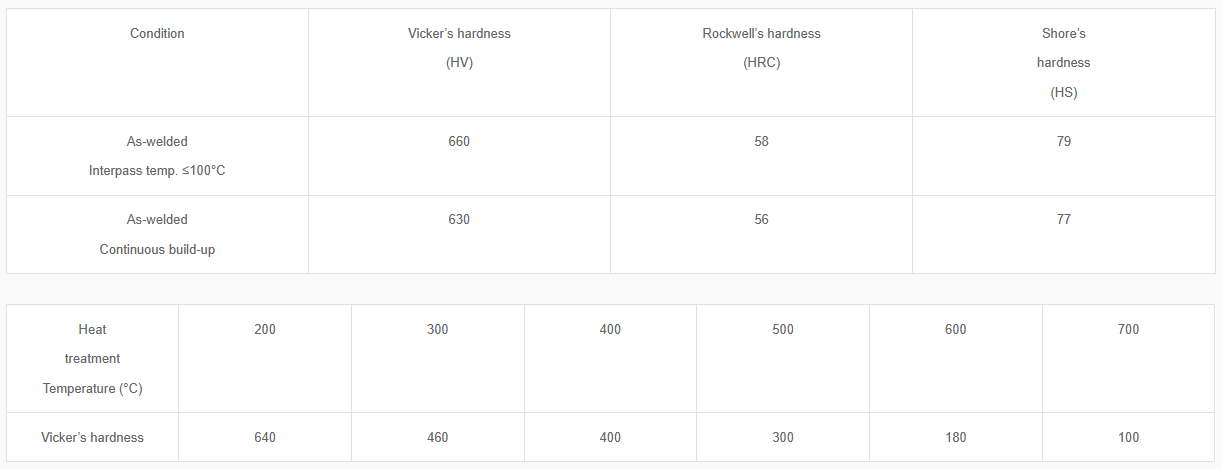 - It provides excellent hardness and abrasion resistance at high temperature due to higher chromium carbide content