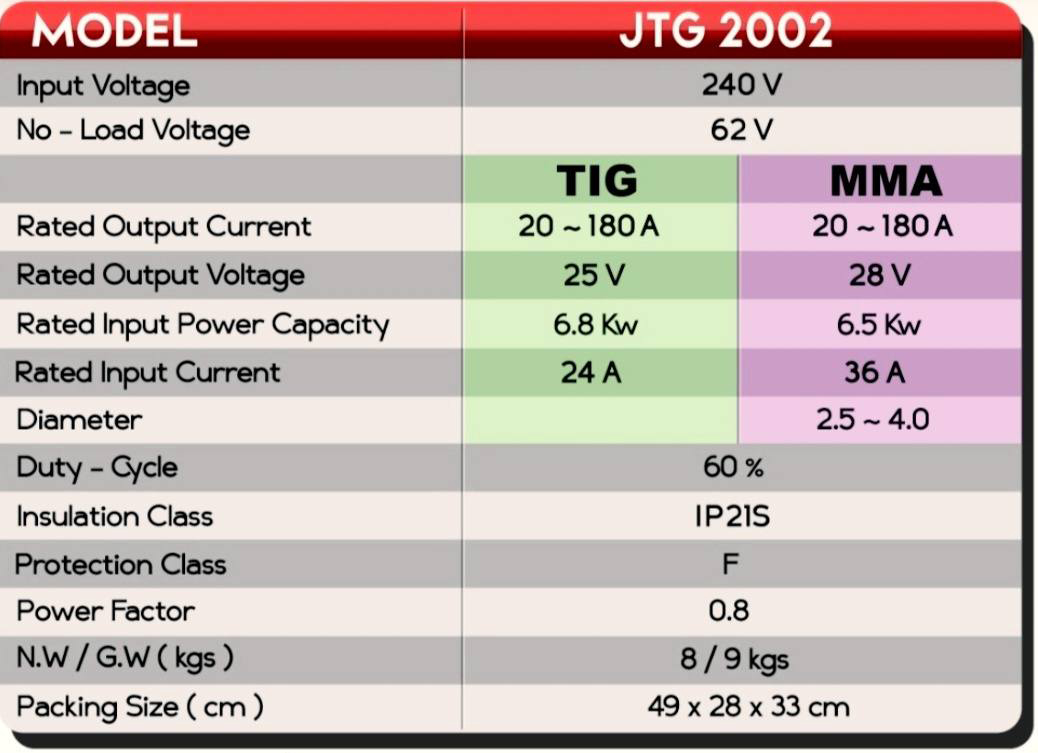 JETMAC JTG 2002 Inverter TIG/MMA Welding Machine [Code: 10525]