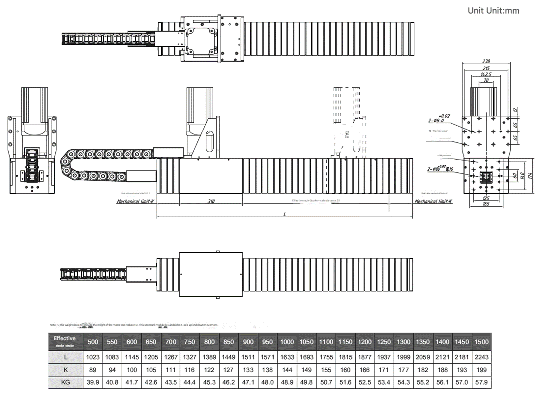 | Stroke Pitch (mm) | 500-2000mm / 50mm pitch | ||