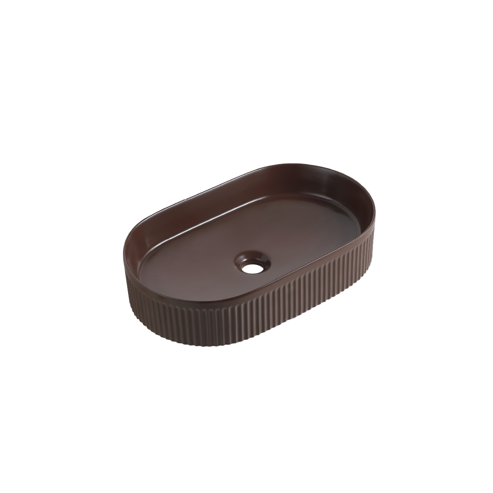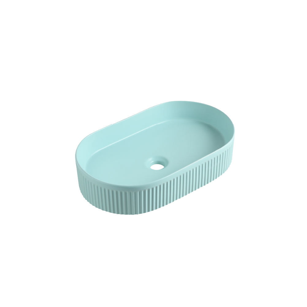 Bareno Linear Oval Countertop Basin L5635 Dimension: L560 x W350 x H120mm Colour: Choco , Mint Green , White Materials: Vitreous China