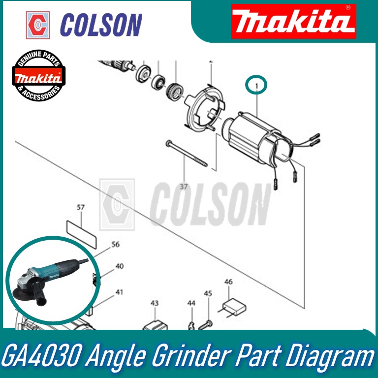 MAKITA 635113-4 GA4030 Angle Grinder Stator Coil