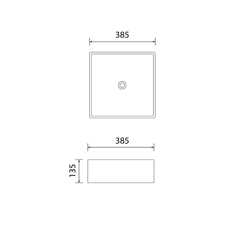 Bareno Countertop Basin W3208 Dimension: L385 x W385 x H135mm Colour: Black , White Materials: Vitreous China