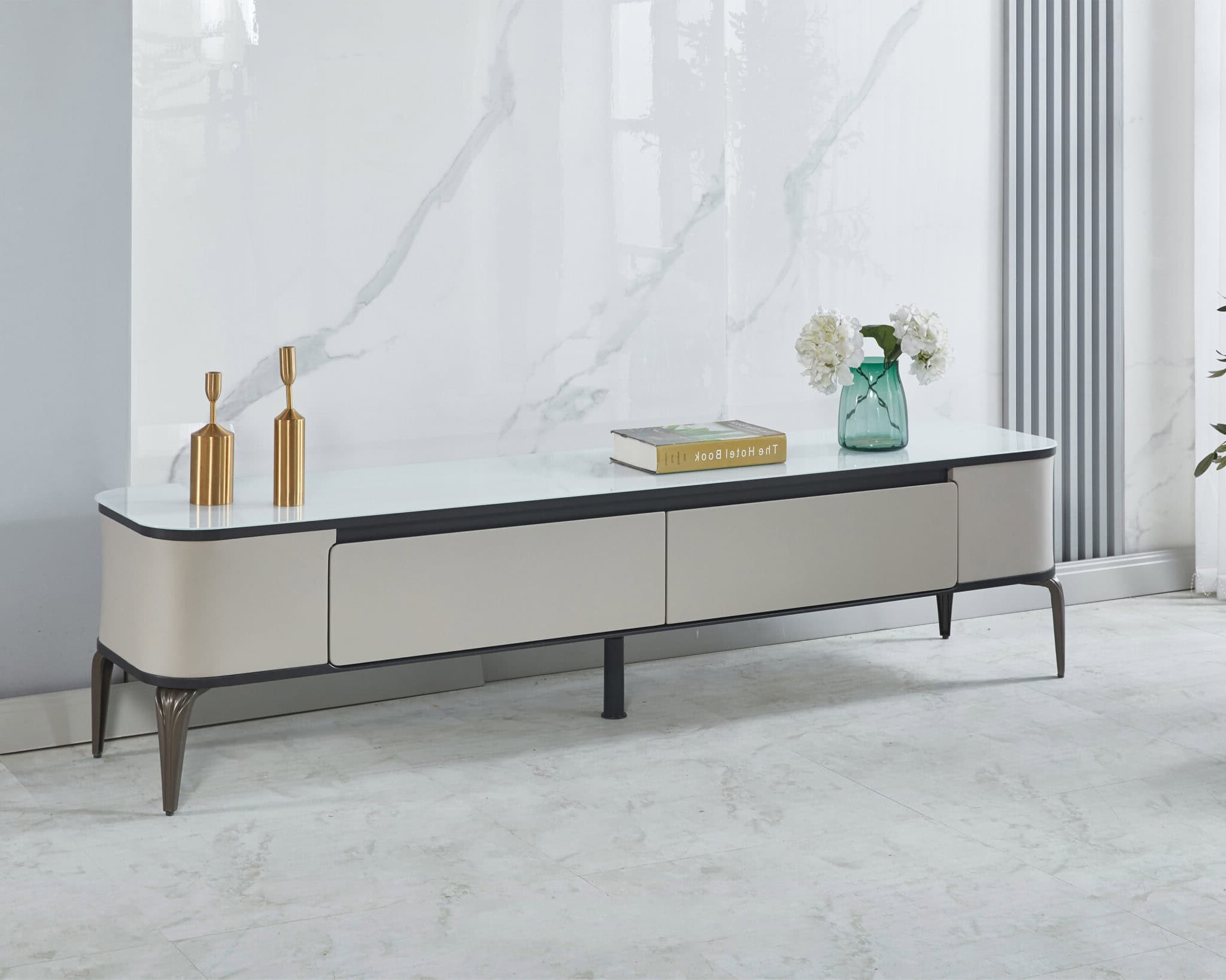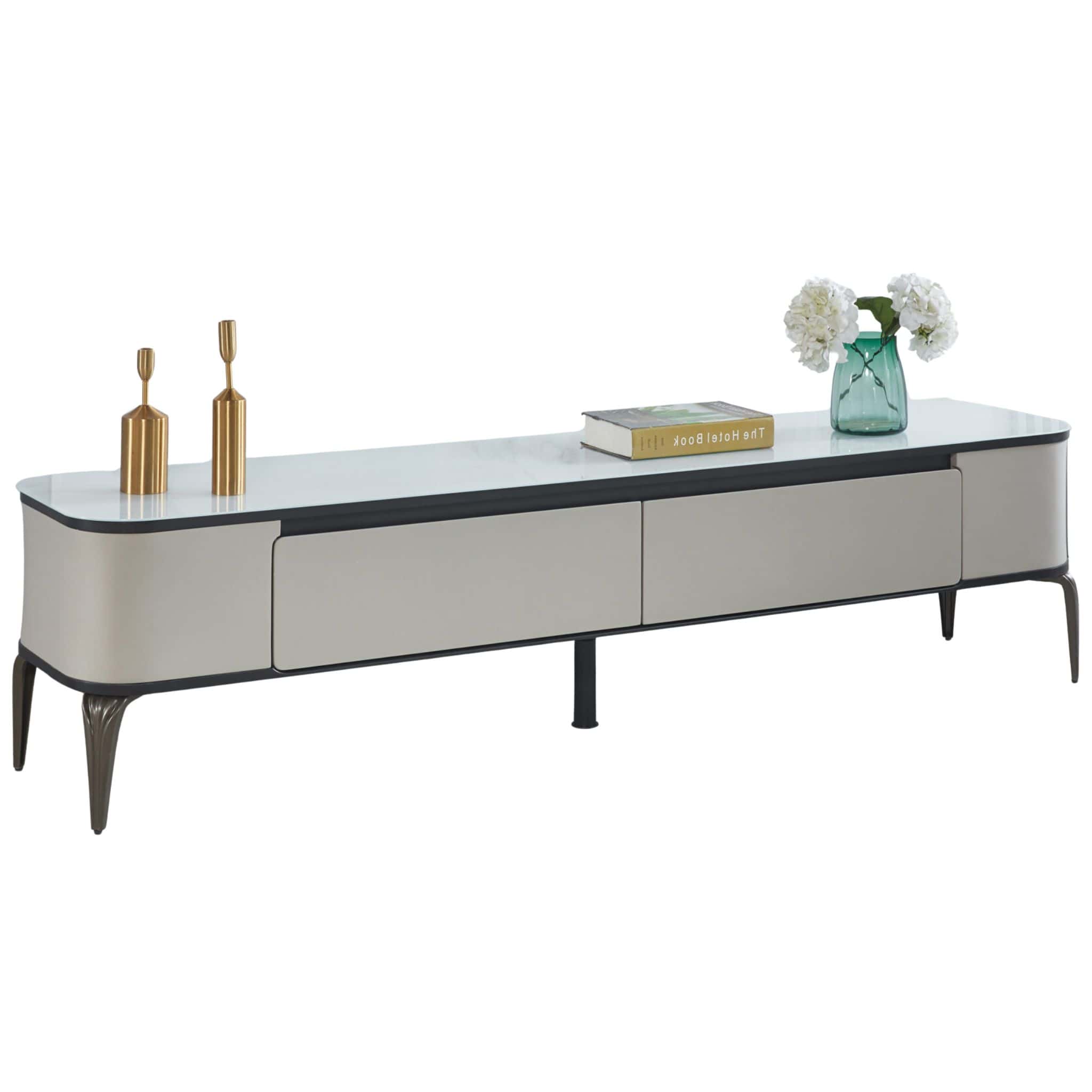 - Rectangular TV Cabinet With Two Drawer Storage