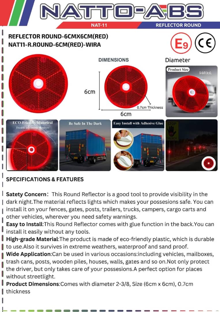 Driving or walking in the dark can be risky – but with our Round Safety Reflector (6cm, Red), you’ll stay visible and protected!