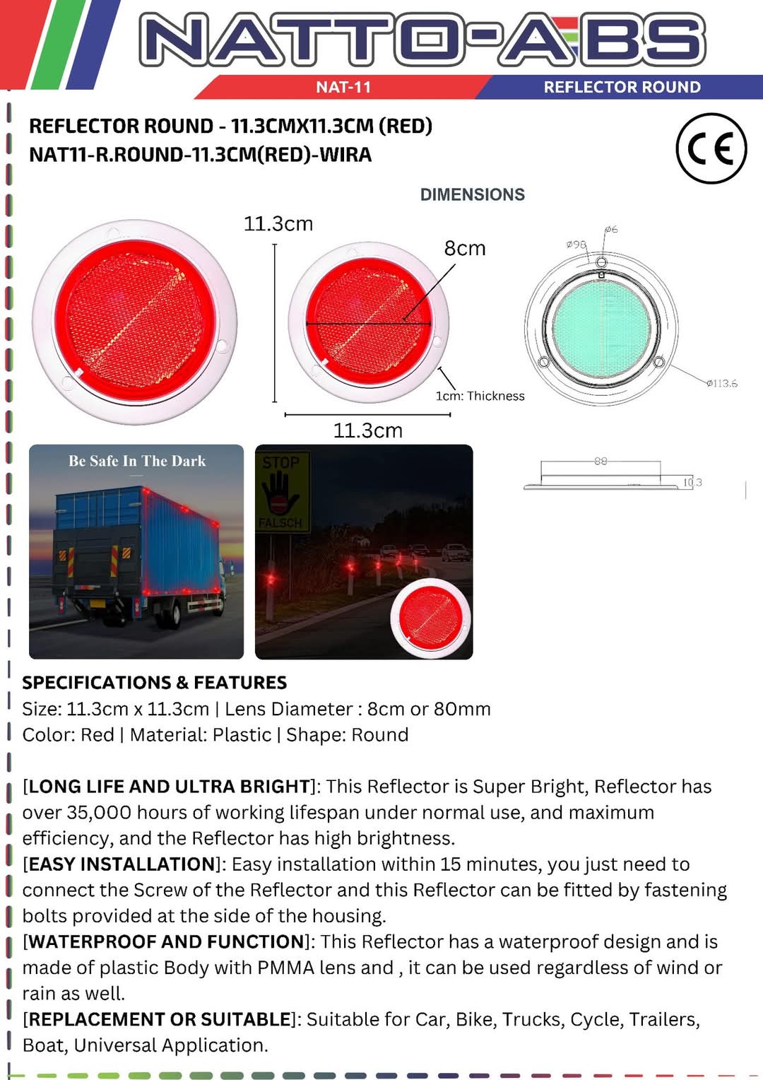 Introducing the NATTO ABS Round Reflector (11.3cm, Red) – your perfect safety companion for cars, bikes, trucks, trailers, and even boats!