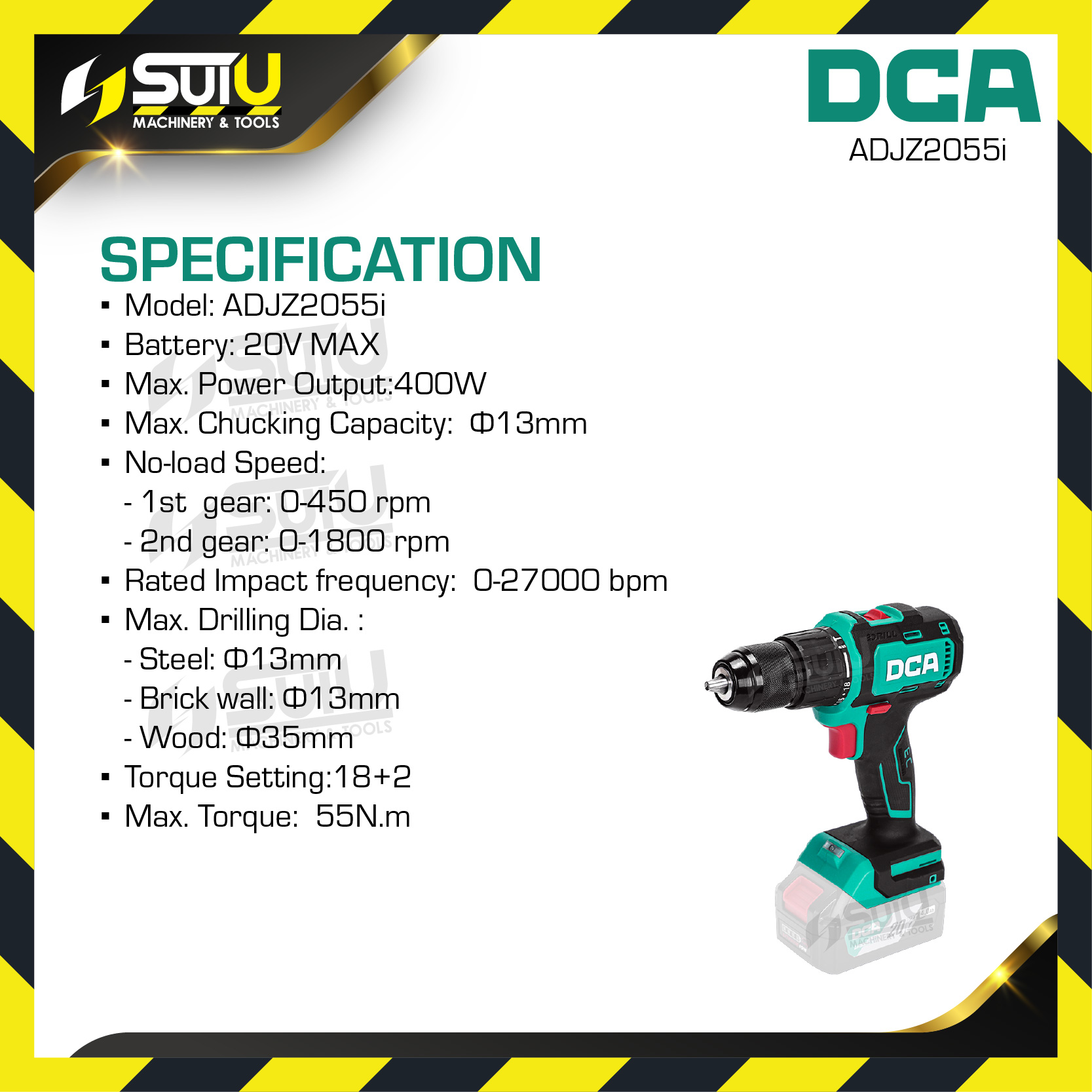 - Max Chucking Capacity : 13mm
