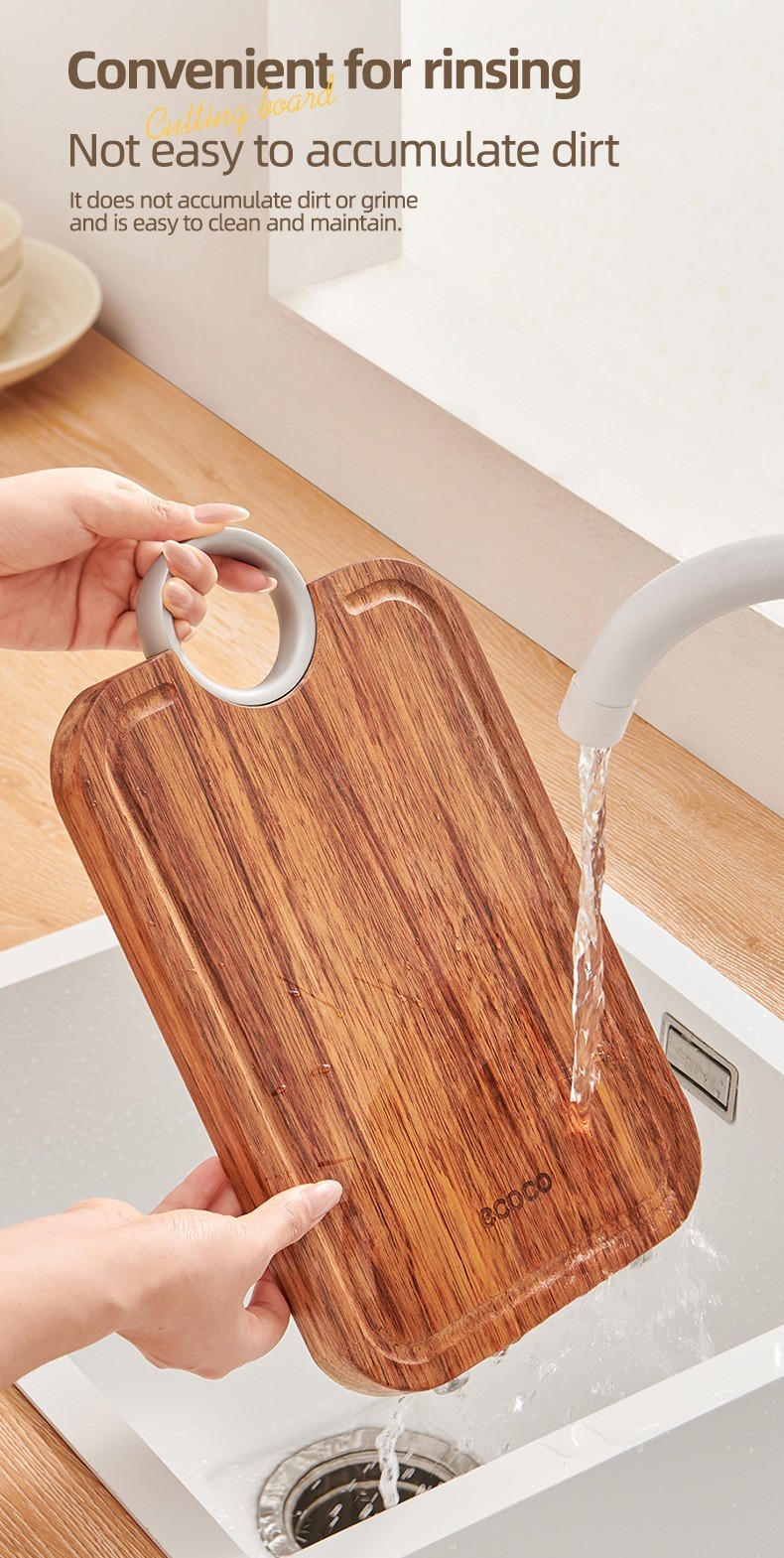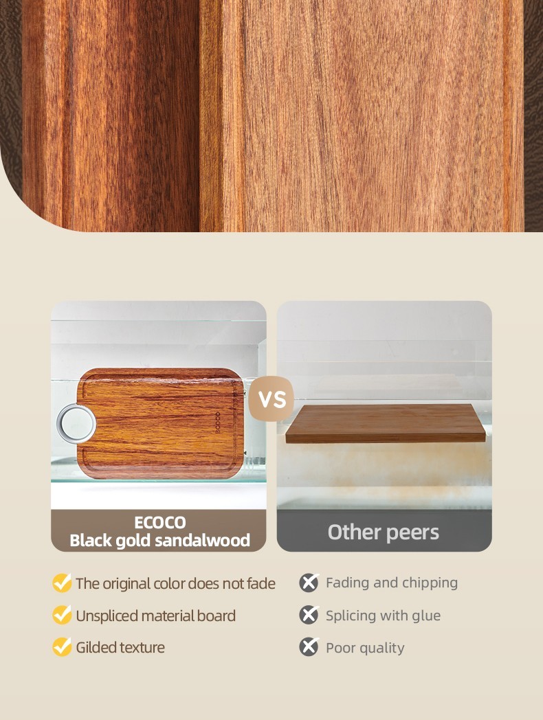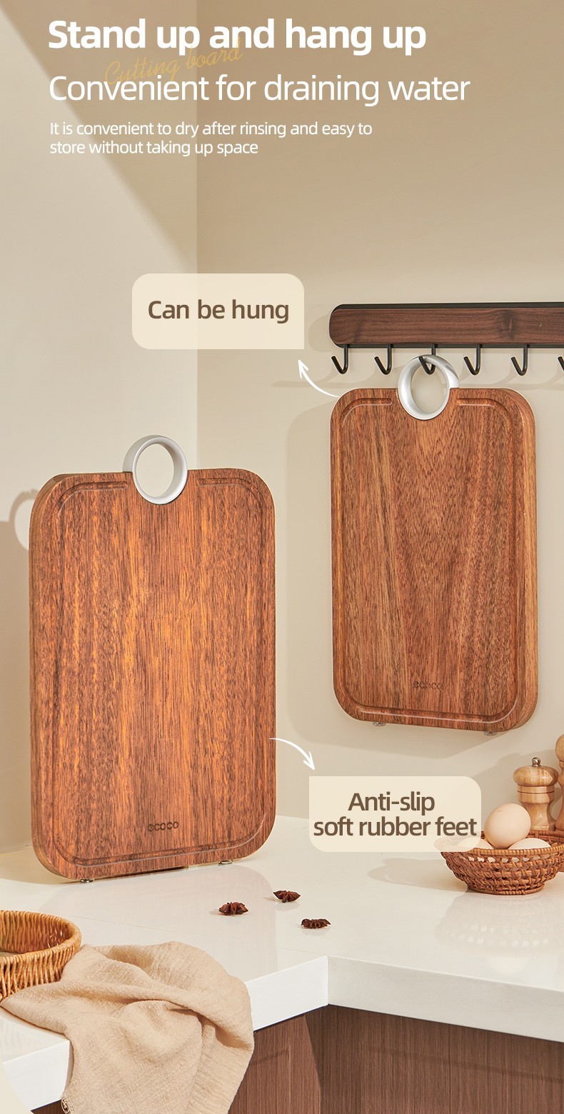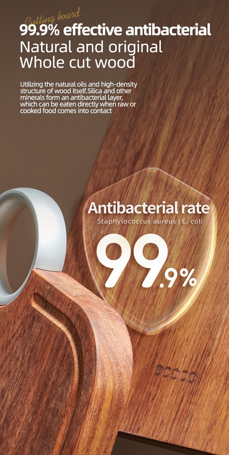 Upgrade your kitchen with the ecoco Black Sandalwood Cutting Board, made from whole-cut natural solid wood with 0 paint, 0 wax, 0 additives. This premium board offers super durability, strong hardness, and an antibacterial rate of 99.9%, making it safer and longer-lasting than normal wooden boards.