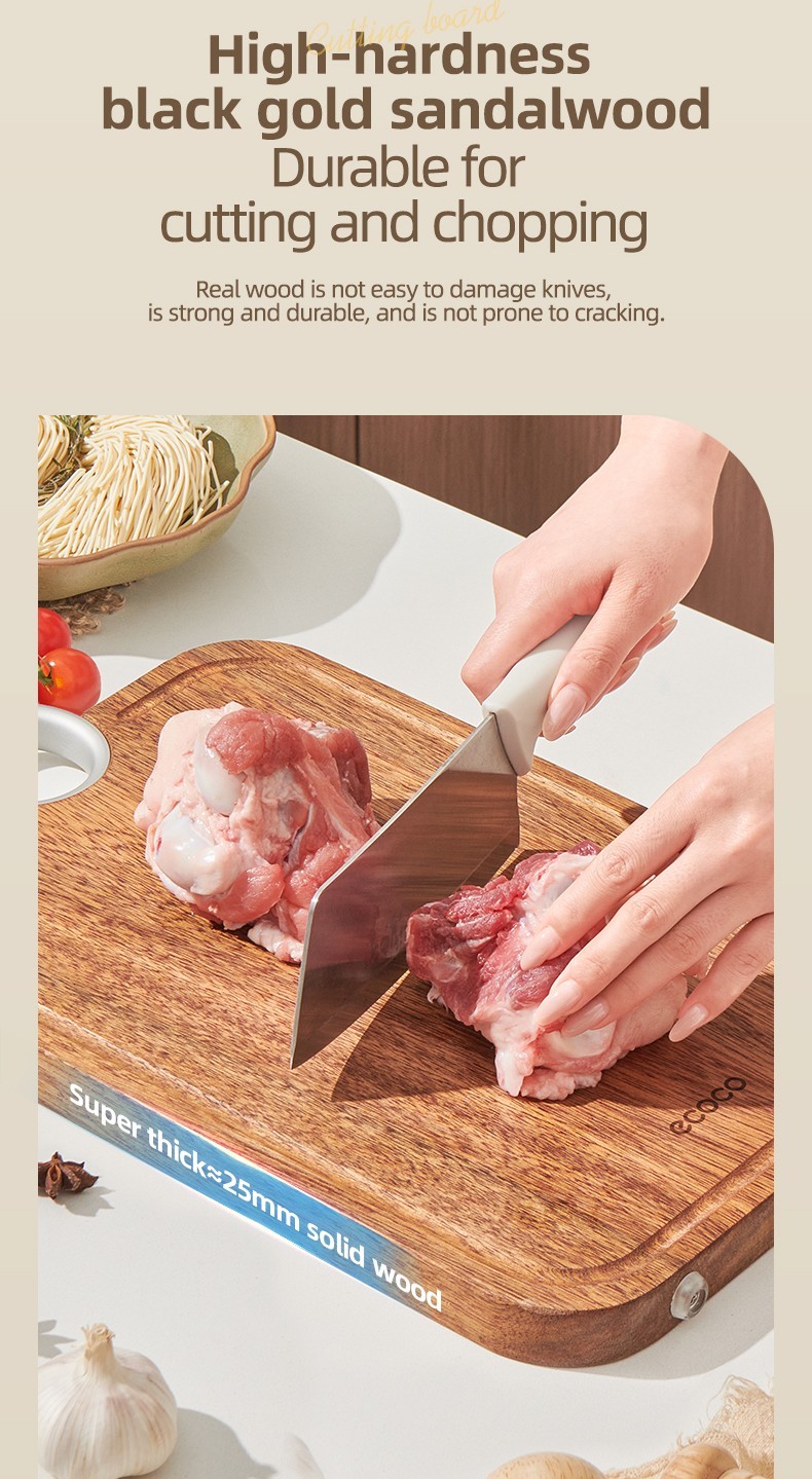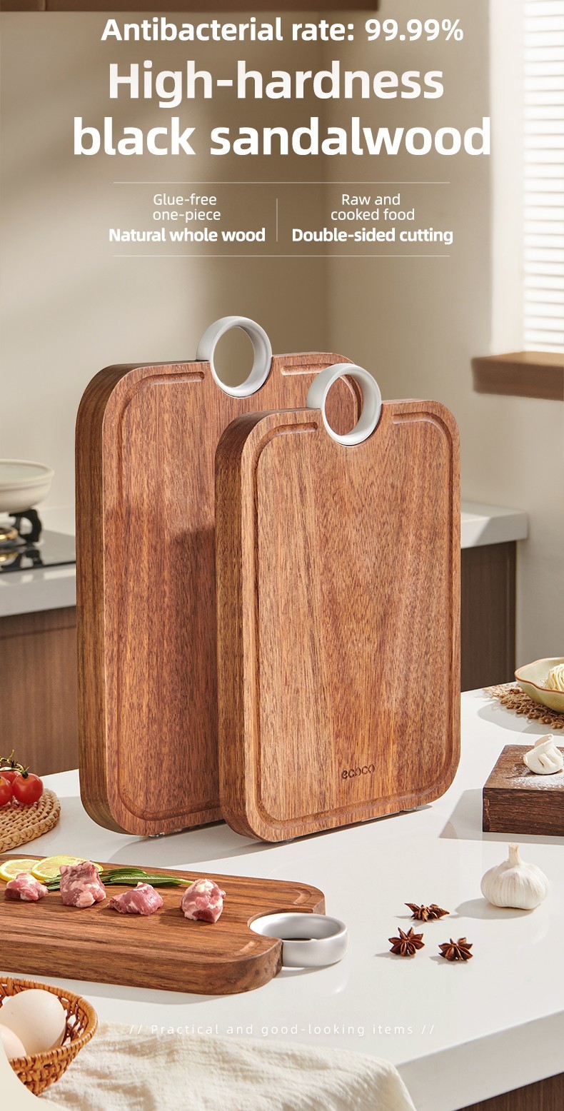 LODER ECOCO Black Sandalwood Cutting Board Natural Solid Wood Chopping Board Juice Groove Hardness Antibacterial 99.9%
