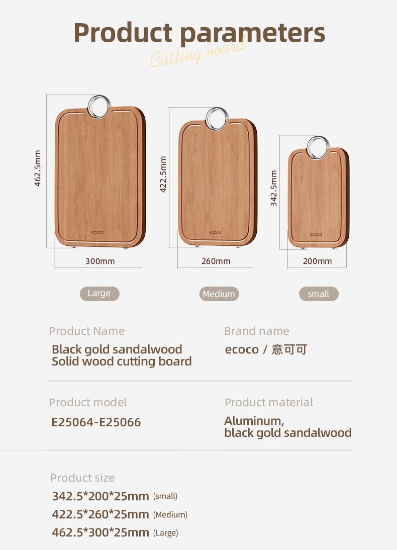 1 × ecoco Black Sandalwood Cutting Board (Choose Size)