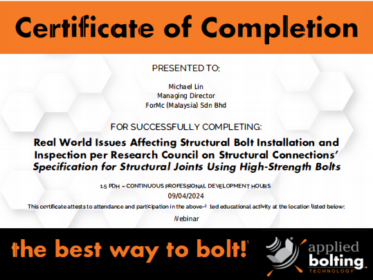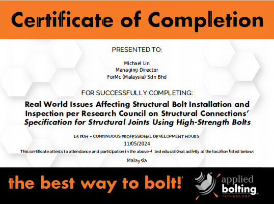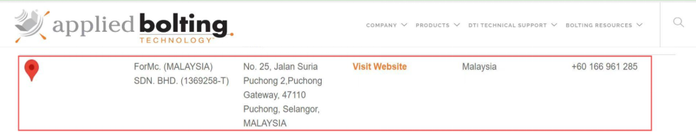 ForMc is the authorized dealer of Applied Bolting Technology Products LLC, with the right to promote and sell Squirter® and DuraSquirt®DTI made in USA for many years. We have delivered more one million pieces of Direct Tension Indicators(DTIs) to renowned companies worldwide. Adhering to the principle of "on-team, on-site, on-time" service, we have earned consistent praise from customers.
