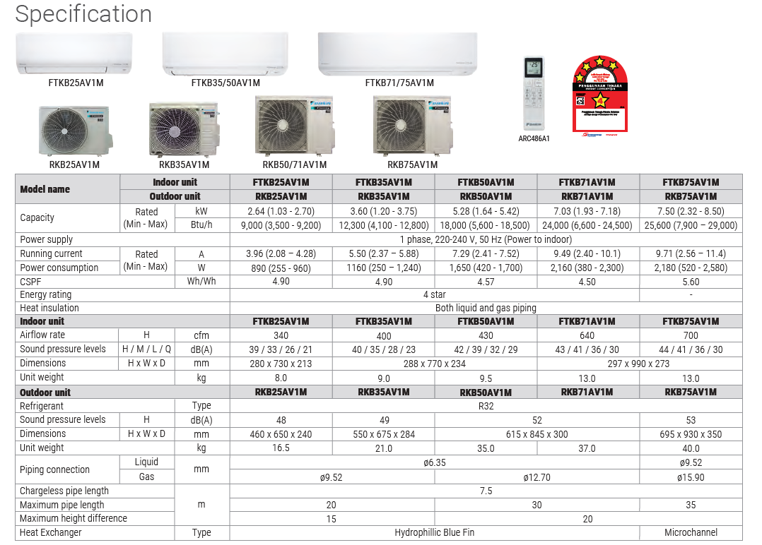 DAIKIN FTKB SERIES R32 INVERTER WALL MOUNTED 4-STAR