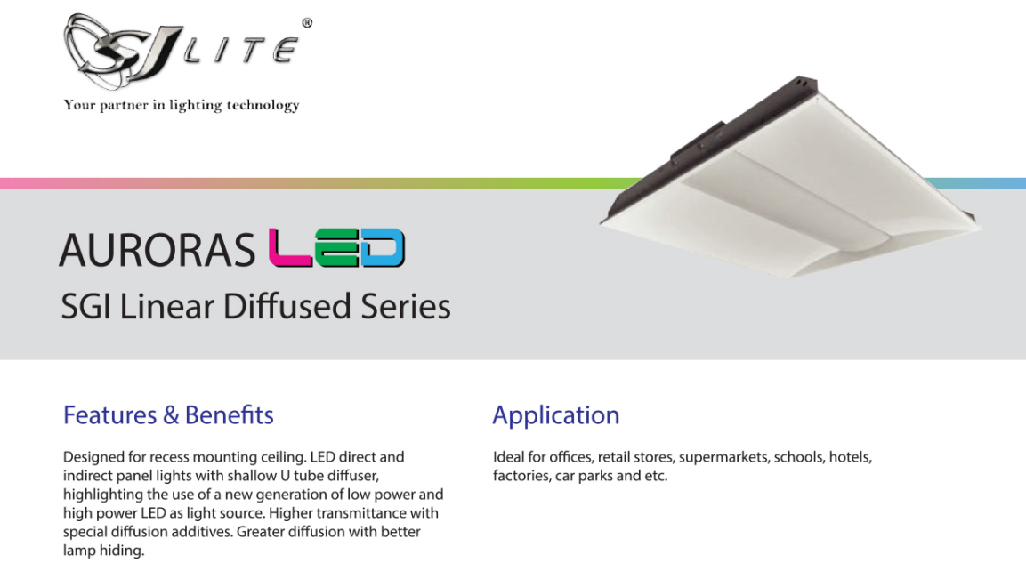 The SJLITE SGI AURORAS SERIES LED RECESSED LINEAR DIFFUSED PANEL LIGHT 2X2 240V IP20 CRI80 [23W/34W] [2250LM/3200LM] [3000K/4000K/6500K] [30,000HRS/50,000HRS] delivers high-performance illumination designed for modern commercial and residential lighting needs. Its clean, recessed linear diffused design provides soft, uniform light distribution, reducing glare while enhancing visual comfort in any space.