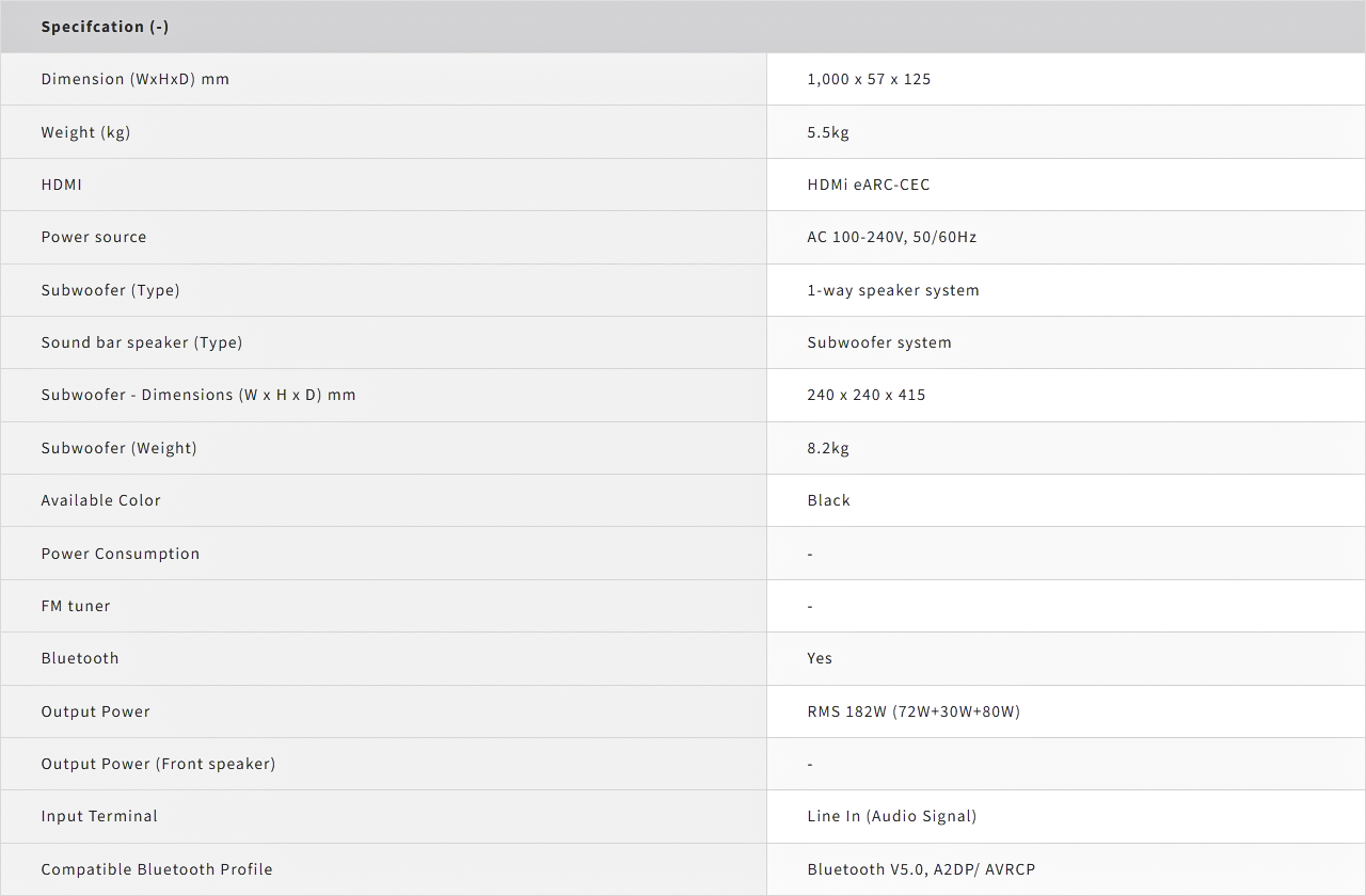 • 3.1.2 ch Sound Bar with wireless subwoofer