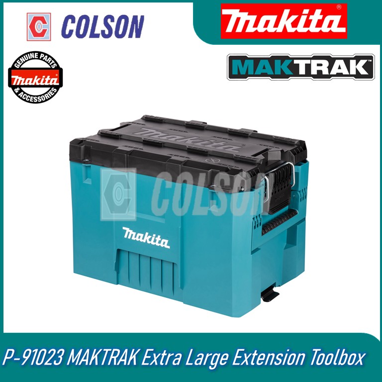 Dual Hinged removable lid allows access from both sides. Fits oversized tools & accessories. Ability to cleat mount or vertically connect to Rolling Tool Box. Multiple lid mounting points. Storage tray for batteries, charger & more. Large glove-friendly latches. Robust comfort grip carrying handles. Metal reinforced padlock eyelets and hidden security tracker slot