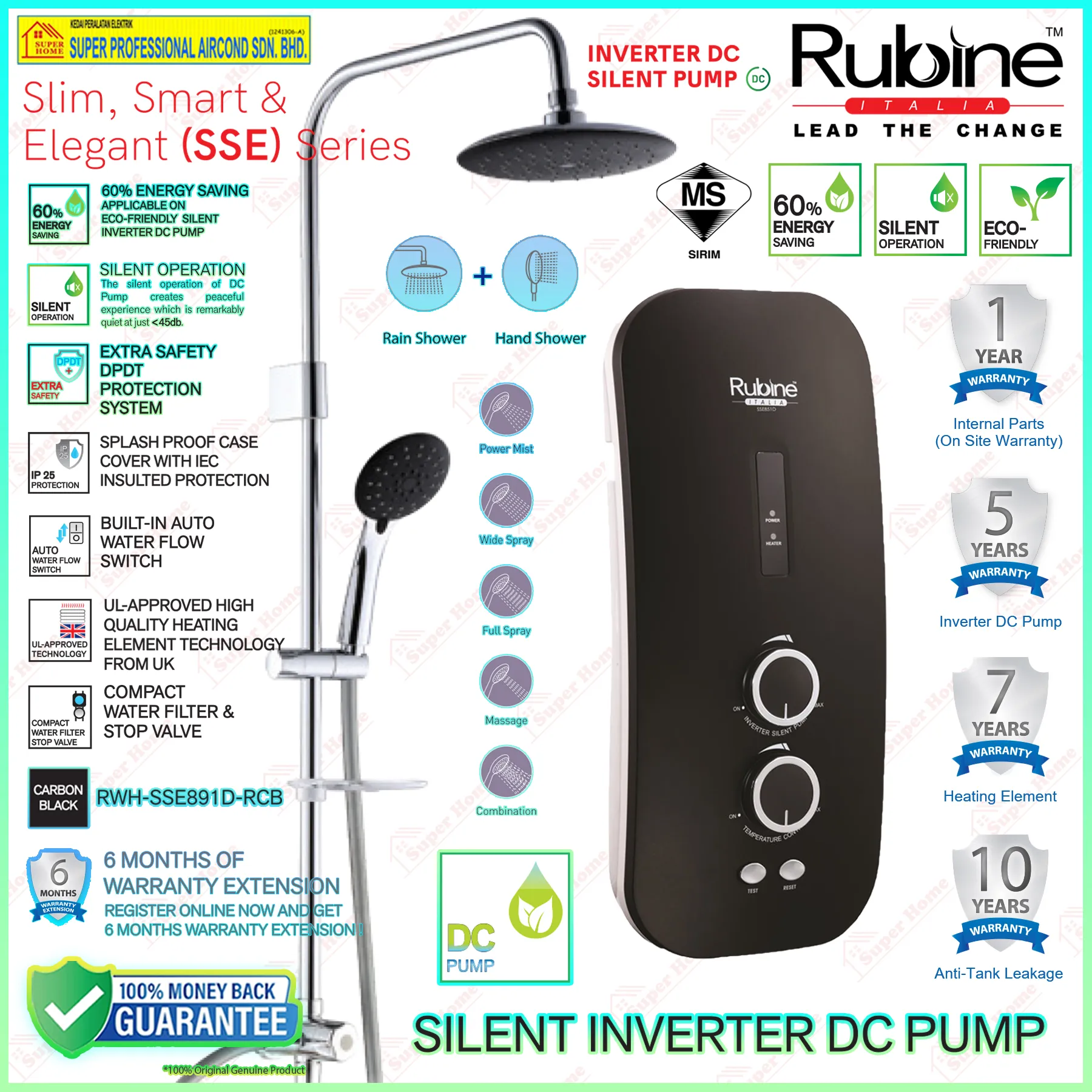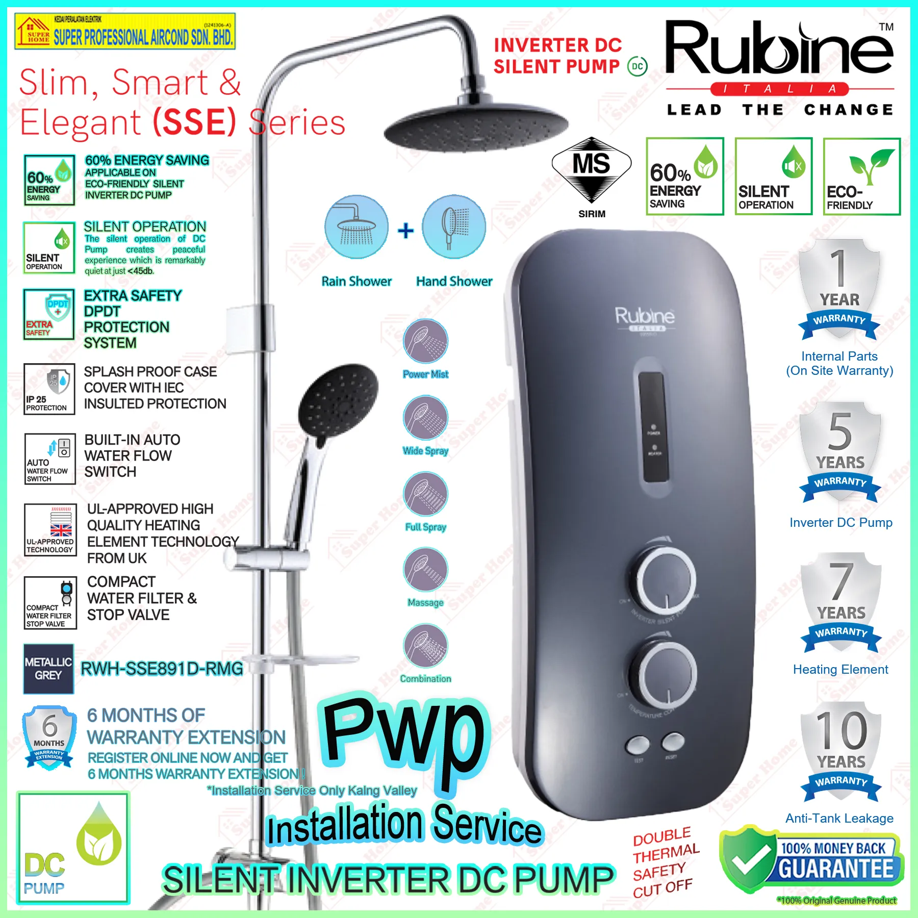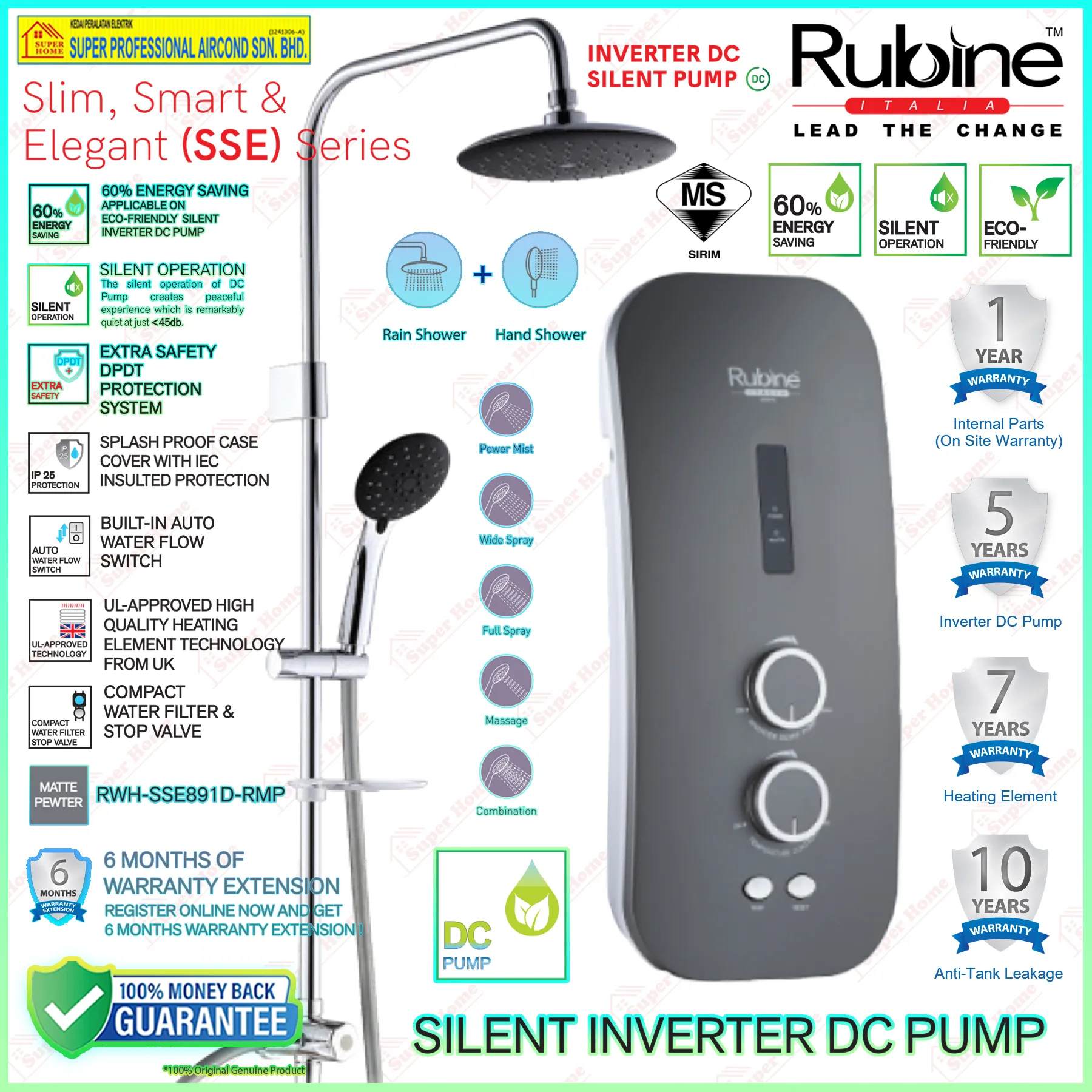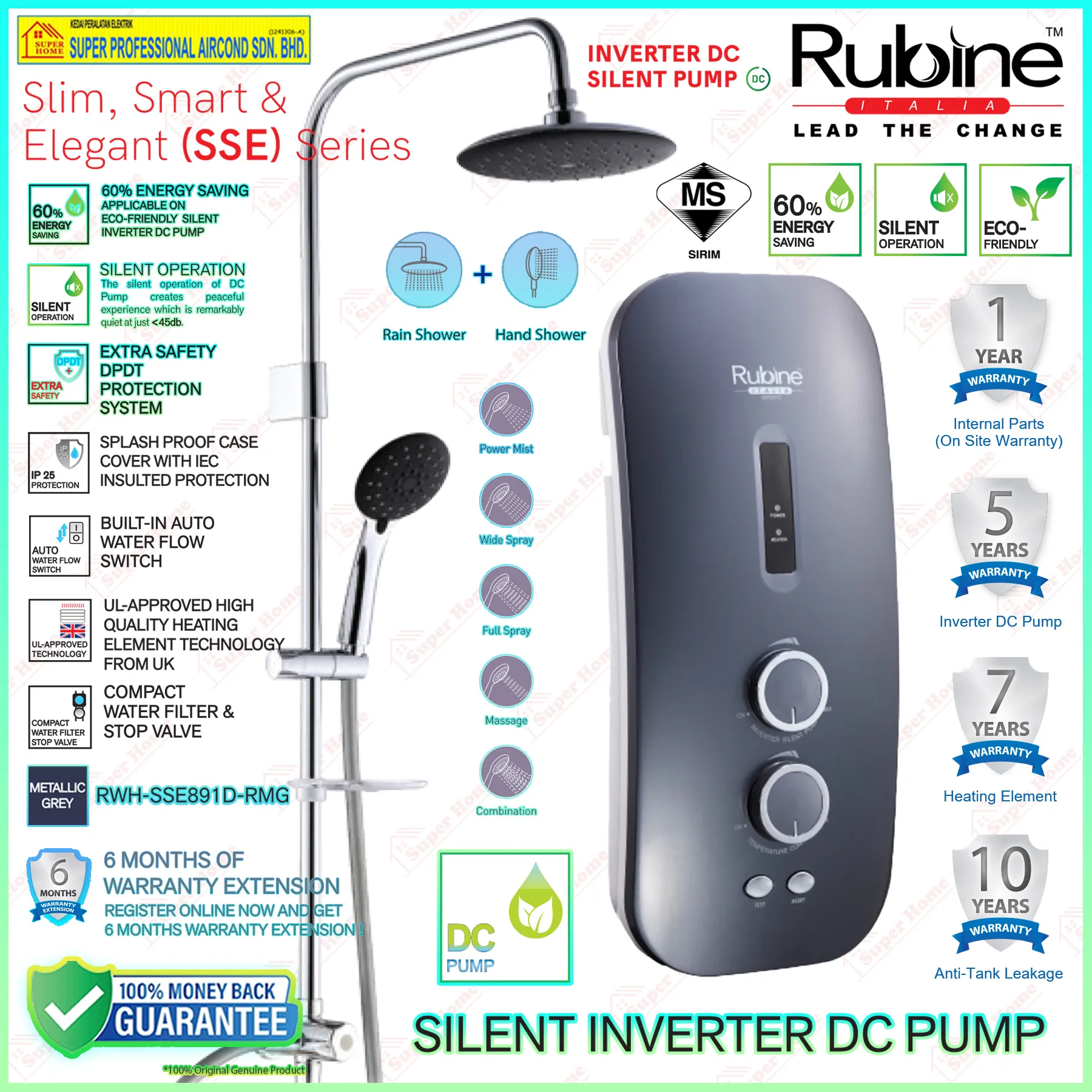 Rubine Water Heater RWH-SSE891D-RMG (Matellic Grey) DC Inverter Silent Booster Pump With Rain Shower Set