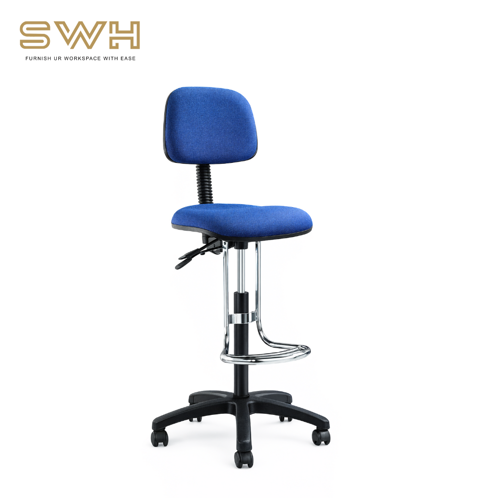The M490 Production Chair is designed for elevated workstations in industrial, laboratory, and technical environments. With an adjustable height mechanism and integrated chrome footrest, this chair supports operators working at counters, benches, and production lines.
