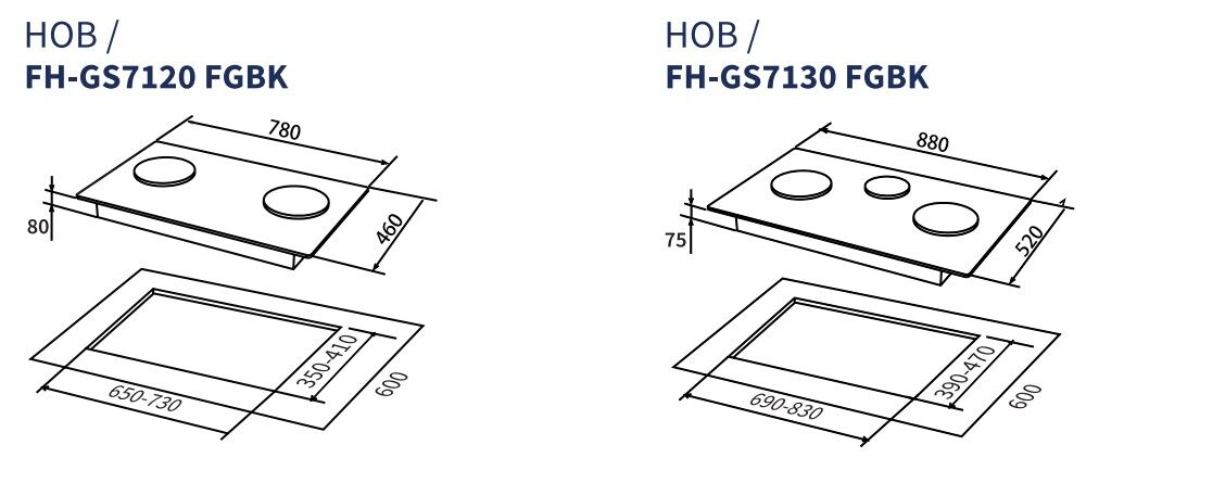 - Power Load: GS7120 (L: 5.5kW, R: 5.5kW), GS7130 (L: 5.0kW, R:5.0kW, C: 1.1kW)