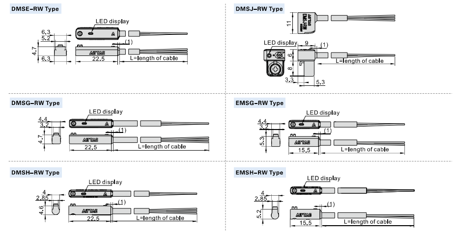 The AirTAC CMS and DMS Series are high-reliability magnetic sensors designed for precise position sensing across a wide range of pneumatic actuators. These sensors are engineered to detect the magnetic ring on the cylinder's piston, providing an accurate electrical signal to controllers and PLC systems.
