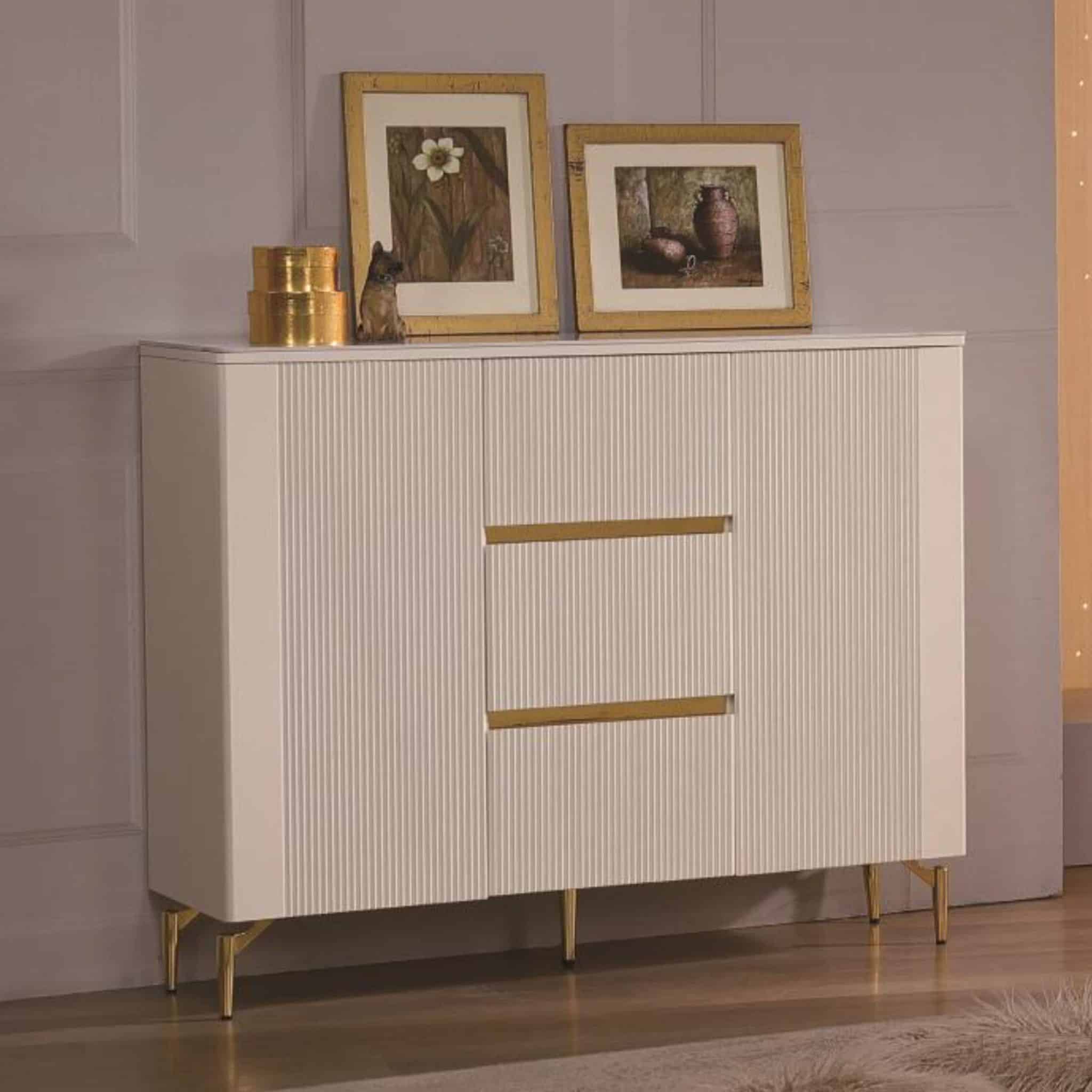 - Gold-Tone Handles And Matching Legs Add A Luxurious Statement Touch