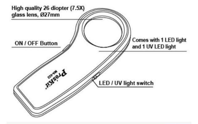 PRO'SKIT MA-022 7.5X HANDHELD LED LIGHT MAGNIFIER WITH CURRENCY DETECTING FUNCTION