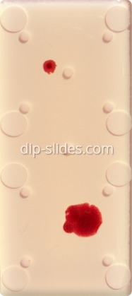 Bacteria testing dipslides with nutrient agar & TTC (red spot dye). The agar (culture media) on this dipslide contains red spot dye which helps the user view and count colonies as they grow as red spots. Nutrient agar will detect / show growth for a wide range of bacteria / non fastidious organisms. Due to nutrient agar being able to cultivate such a wide variety of micro organisms, it is used in many industries. Applications range from classroom use to water, metalworking fluid and cooling water applications. This general use dipslide offers a total bacteria count (TVC) on both sides.