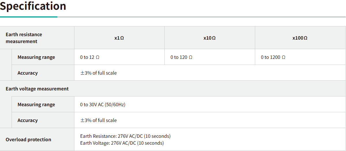 The latest circuit design permits the instrument to operate with the minimum of influence from earth voltage and earth resistance of auxiliary earth spikes