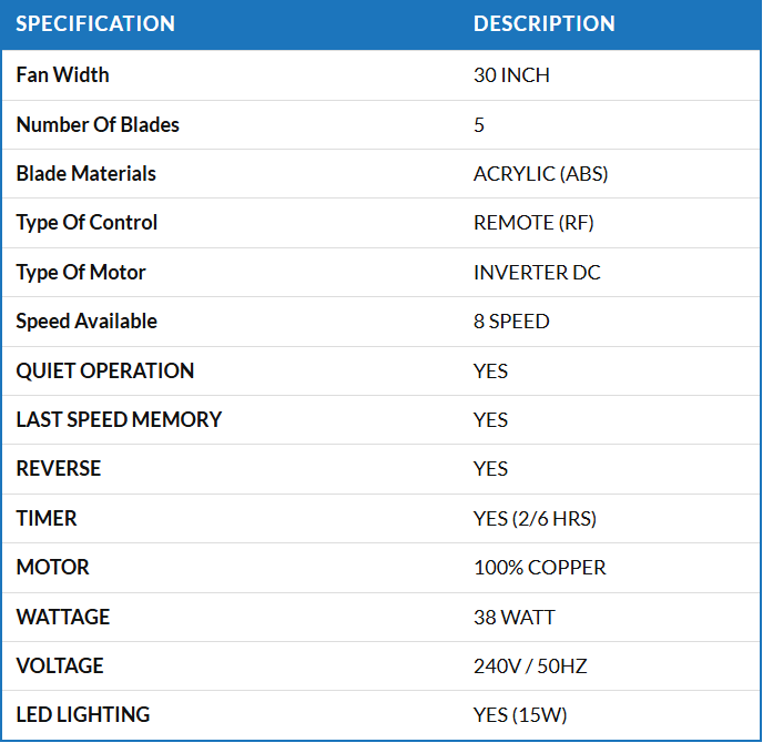 MAVA 30" CEILING FAN WITH LED LIGHT FLORO