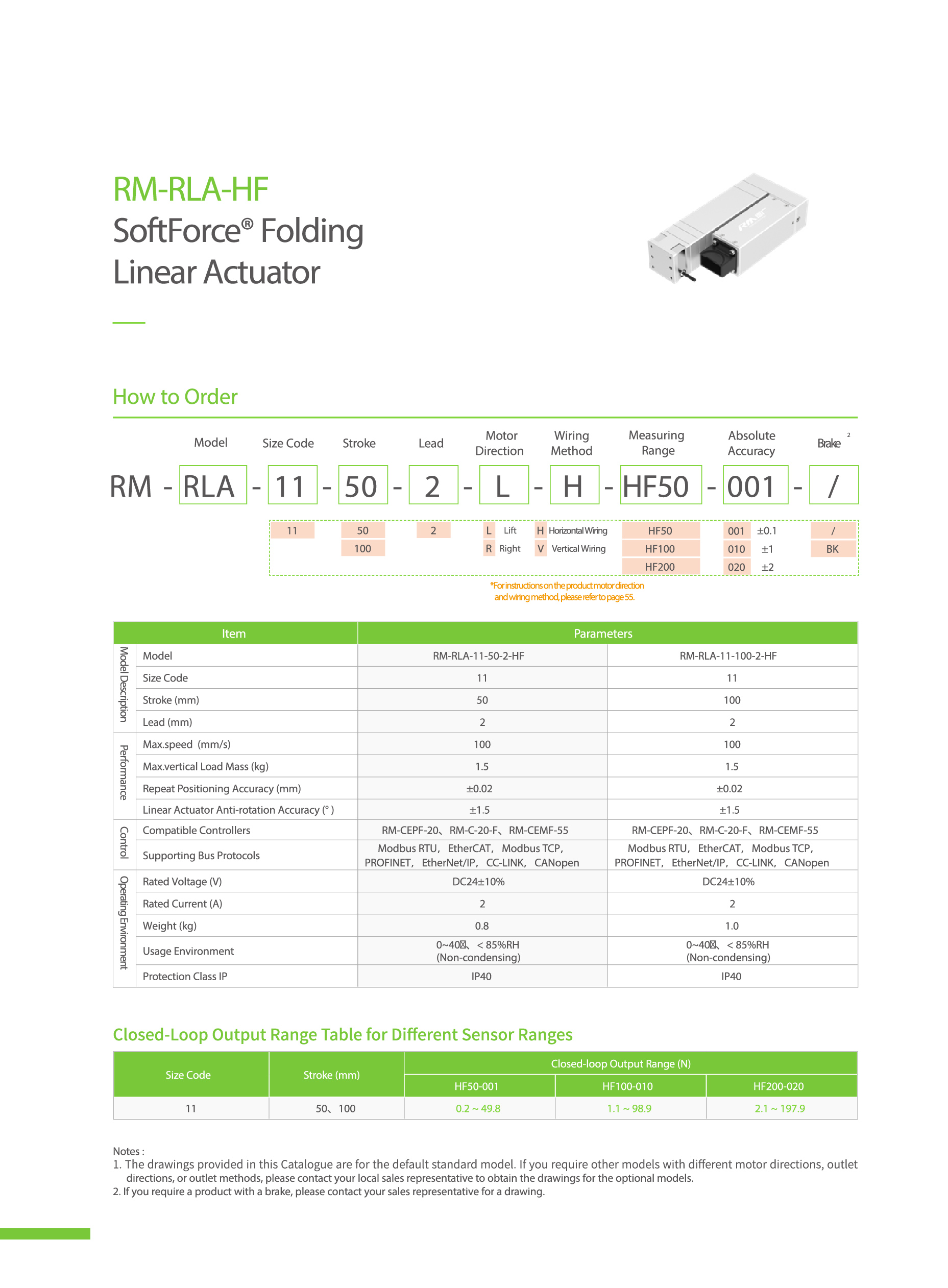 RM-RLA-HF SoftForce Folding (Linear Actuator)