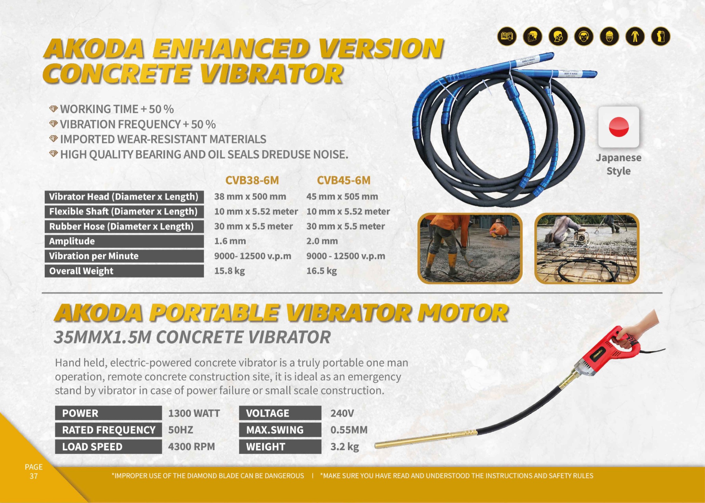 Hand held, electric-powered concrete vibrator is a truly portable one man operation, remote concrete construction site, it is ideal as an emergency stand by vibrator in case of power failure or small scale construction.