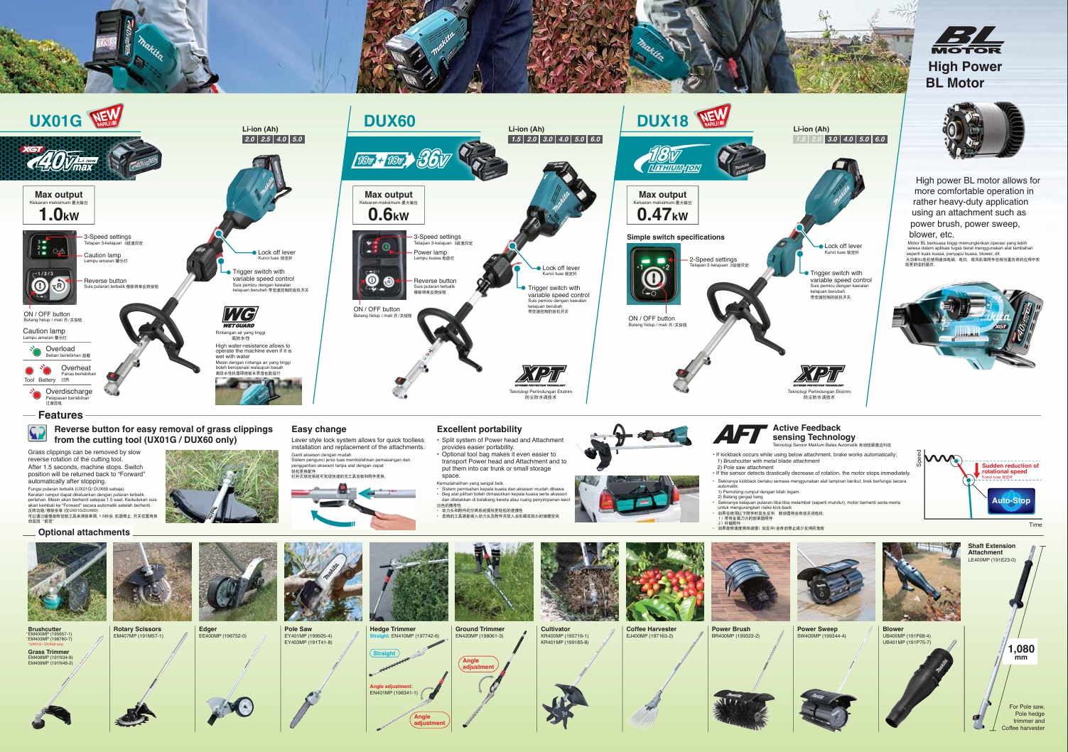 -BL motor and the XGT battery deliver much higher power than the current model DUX60, and enables use in a wider range of applications
