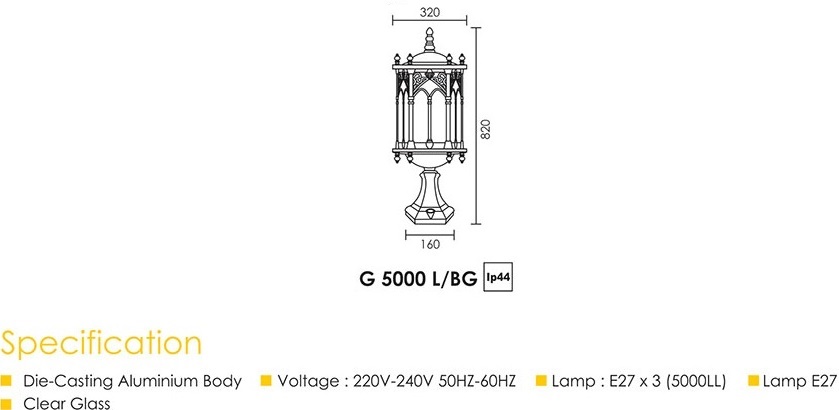 OUTDOOR PILLAR LIGHT (G5000L/BG)