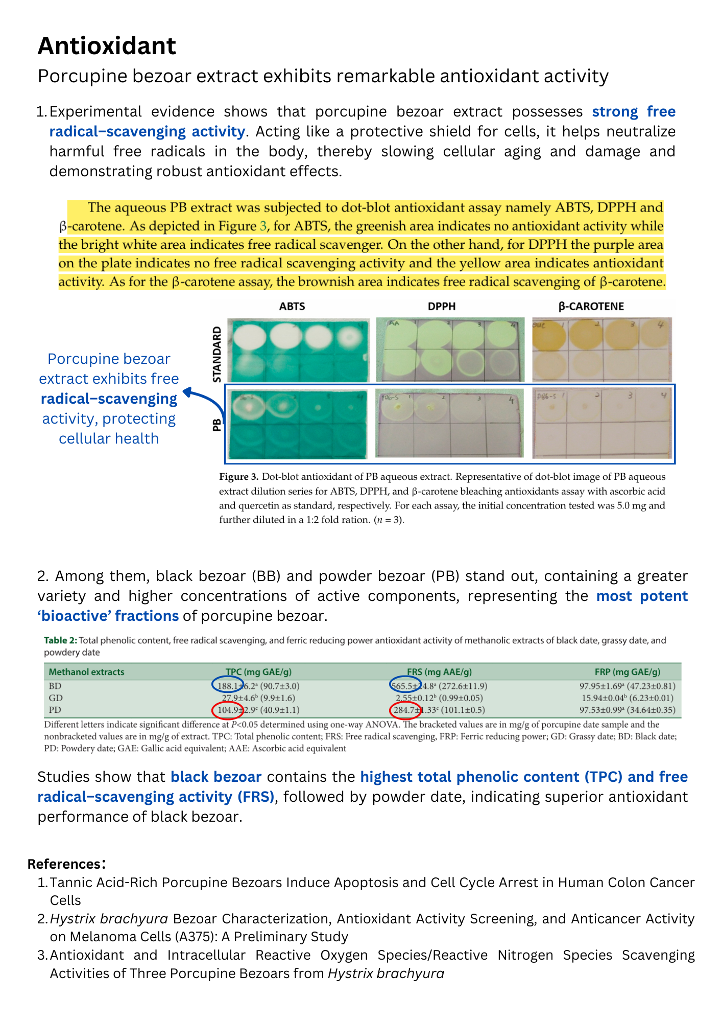 First Line of Defense: The Free Radical Scavenging Mechanism of Porcupine Bezoar Extract
