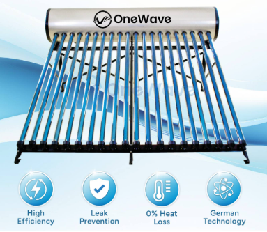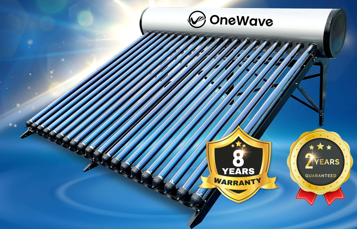The Onewave OW150 is a reliable solar water heater designed for small families. With a 150L tank capacity, it comfortably supports up to 4 users. It uses a closed-loop system with vacuum tubes, which helps improve heating efficiency and reduce heat loss.