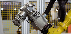 02、complex manipulator The robot picks up a finished part and replaces it with a rough part. |