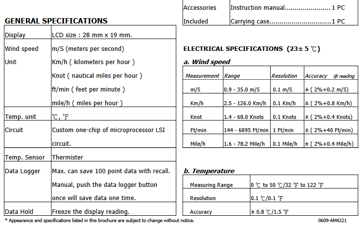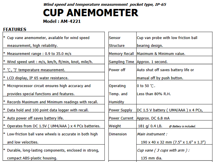 Lutron AM-4221 is a CUP Anemometer for high reliability of correct measurment.