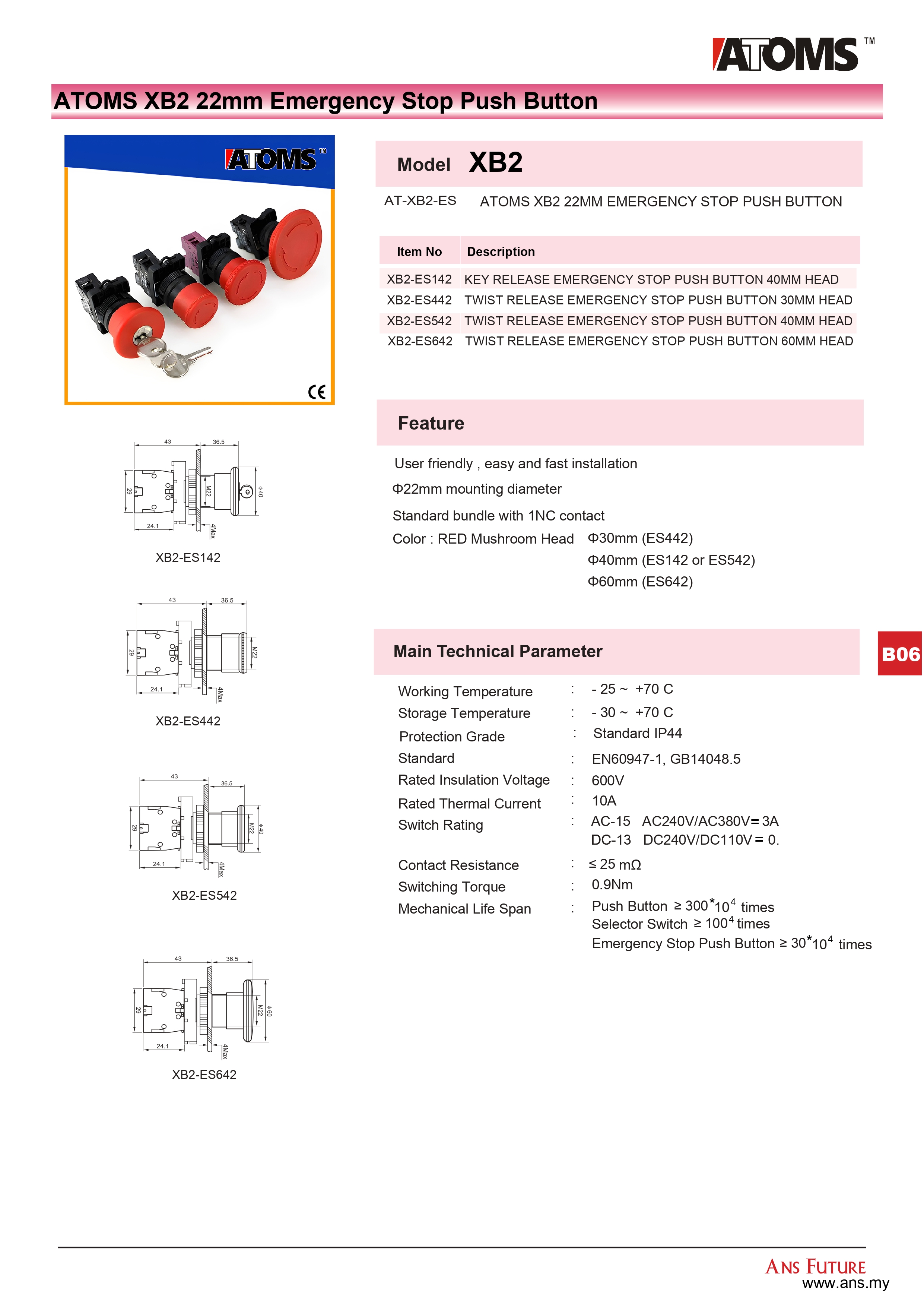 ATOMS XB2 Emergency Stop Push Button